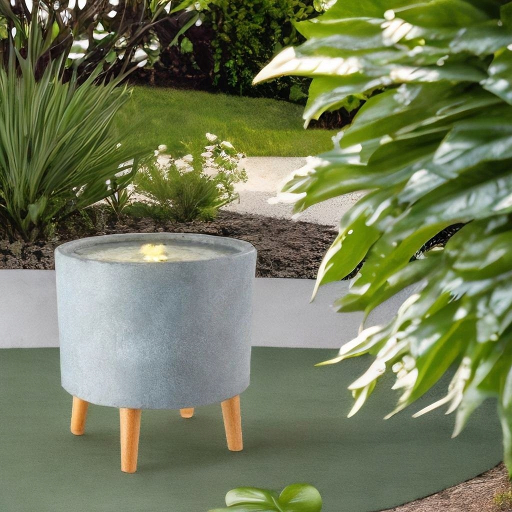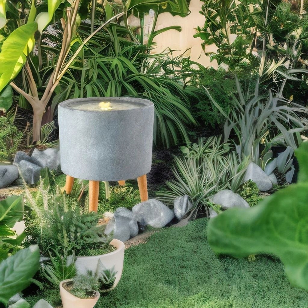 Декоративный фонтан круглый серый светодиод 33 см сад