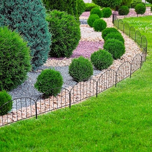 - ☝ Устойчивый к ржавчине материал из высококачественного железного материала с порошковой поверхностью, этот садовый забор устойчив к ржавчине, твердому и длится много лет использования на улице. Забор может быть помещен на глубину 9 см в землю, чтобы лучше выдержать ветер. Он может быть расширен на разные формы в зависимости от применения, таких как треугольный, прямоугольный, круглый
