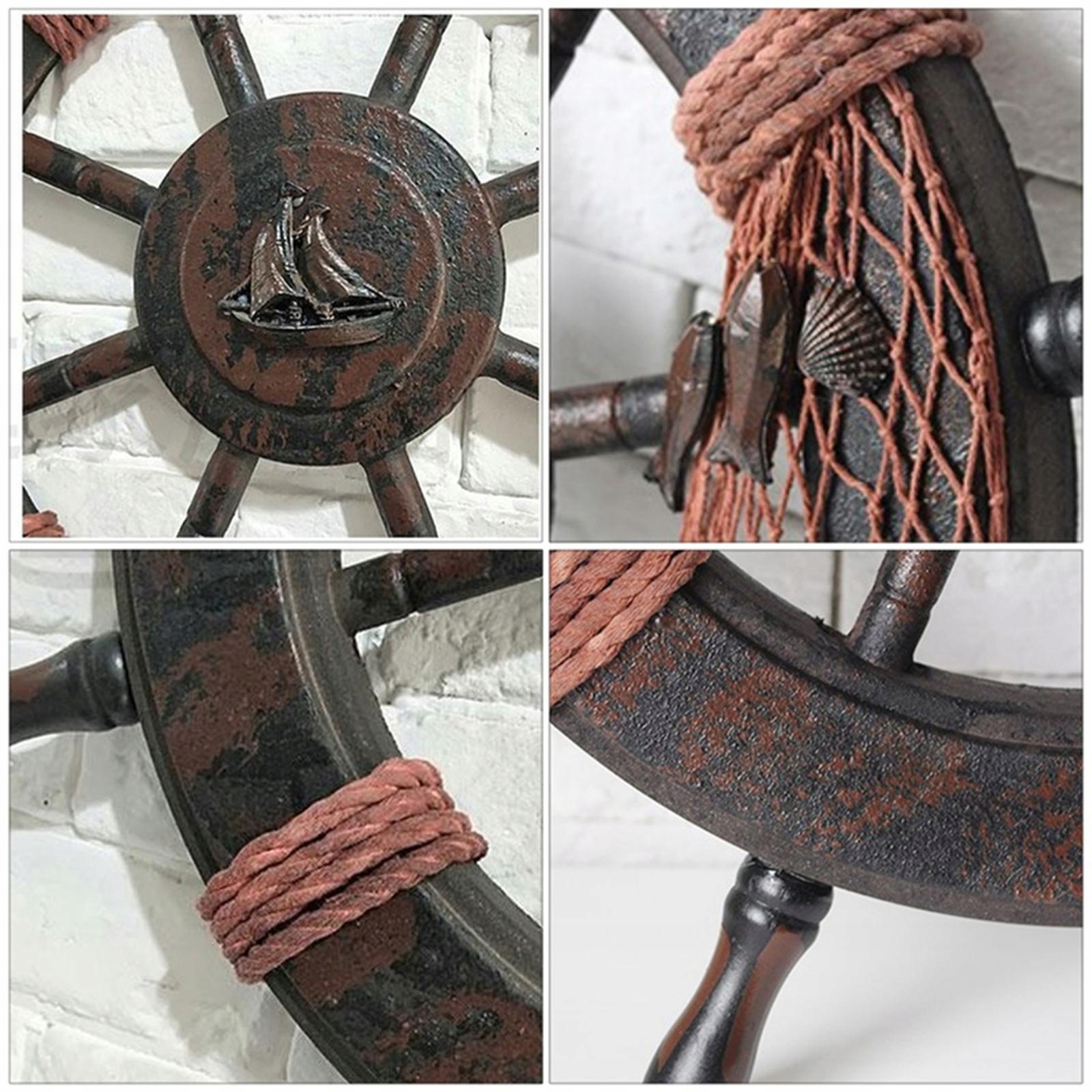 Винтажное колесо корабля, деревянная настенная подвеска для дома, домашний декор, пиратское рулевое управление, 45x4x45 см