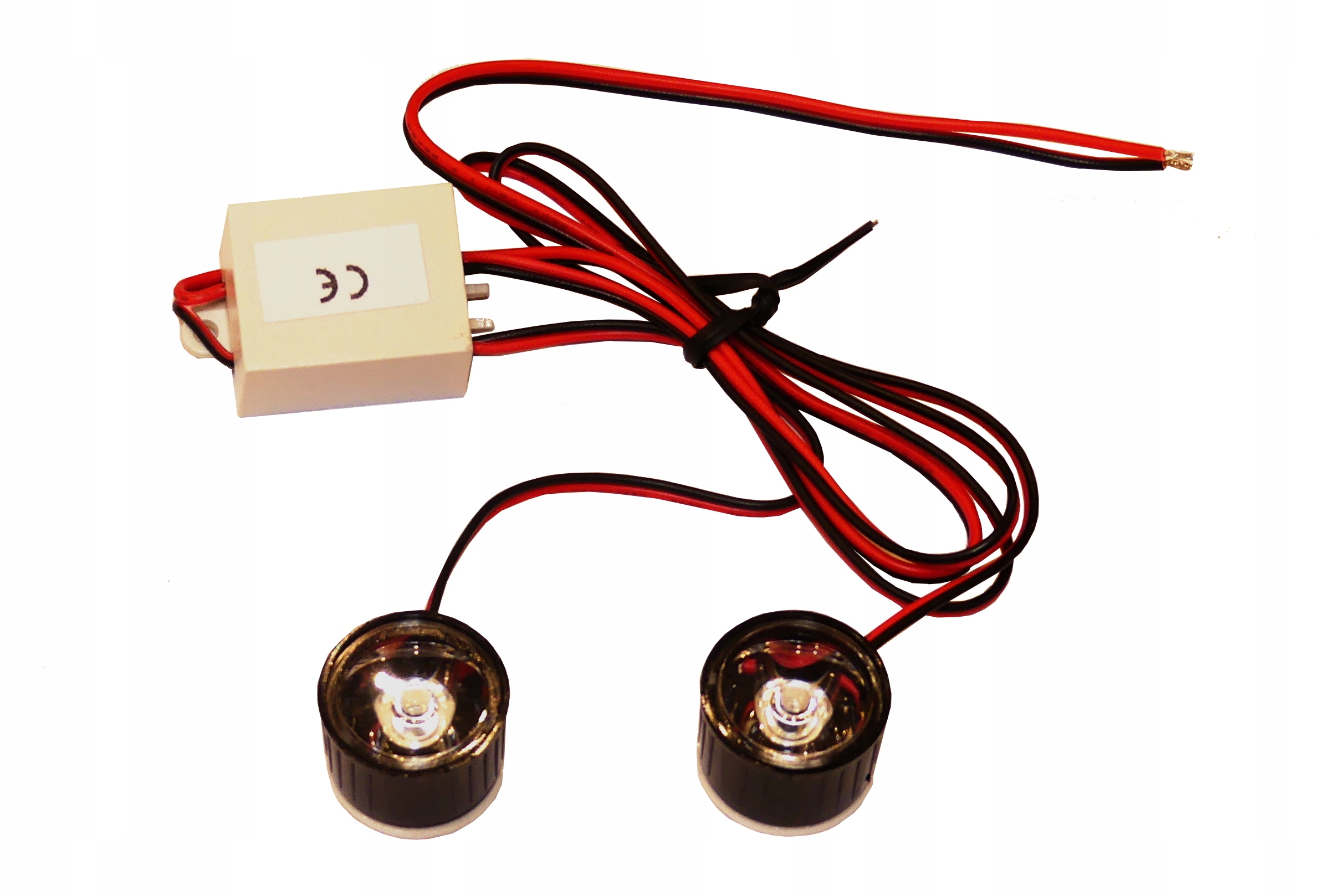 Комплект состоит из миниатюрного блока управления и двух круглых светодиодных ламп, излучающих стробоскопический свет синего/красного цвета. Стробоскопы могут стать интересным гаджетом в автомобилях с аккумуляторной батареей.