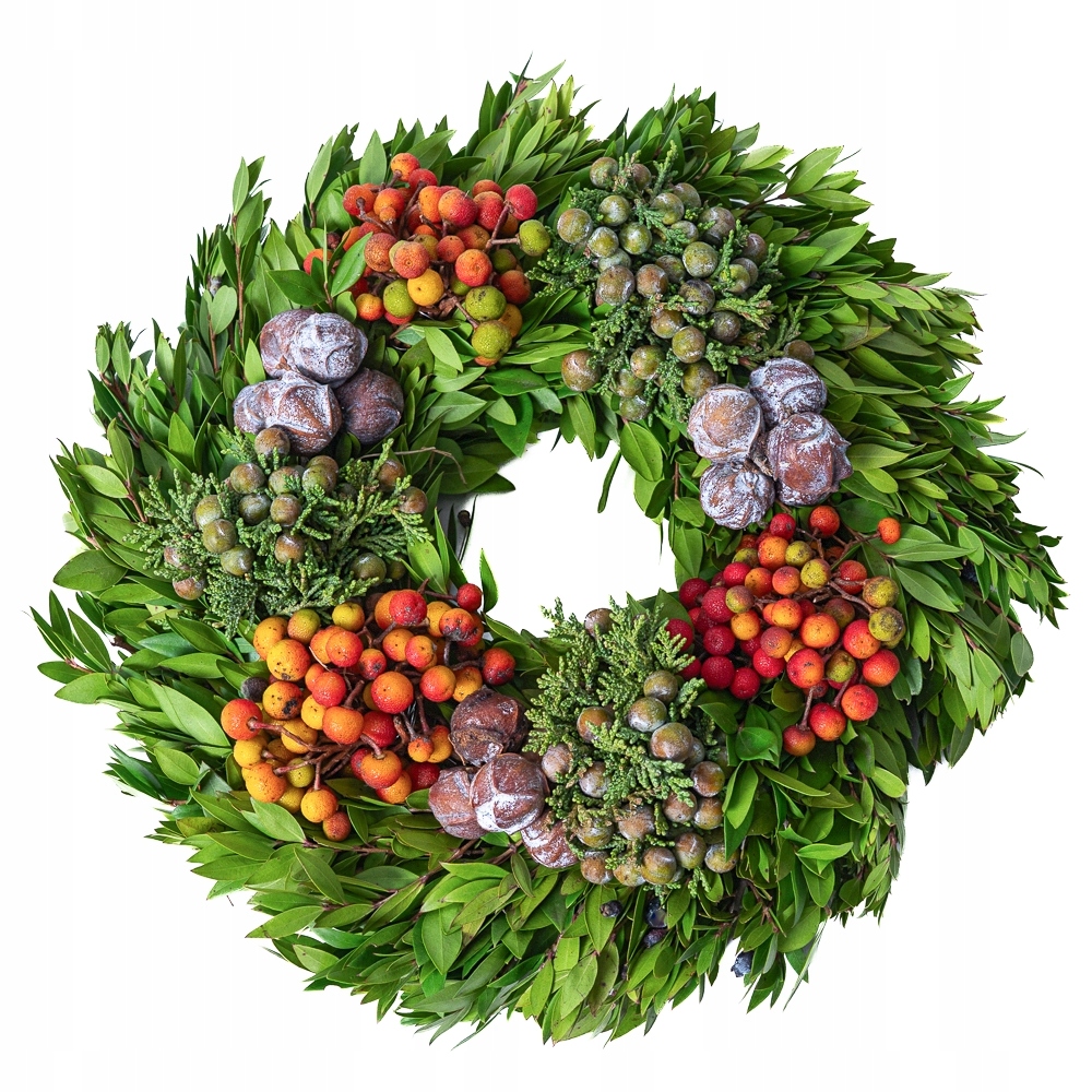 💐Рождественский венок премиум-класса - изготовлен вручную из густо расположенных вечнозеленых веток и тщательно отобранных фруктов и ягод глубоких праздничных цветов. Каждый элемент закреплен на прочной цветочной основе, благодаря чему композиция получается ровной, наполненной и долго держит форму. Это элегантное украшение двери, стены или стола – с порога оно подчеркивает качество и класс интерьера.💐