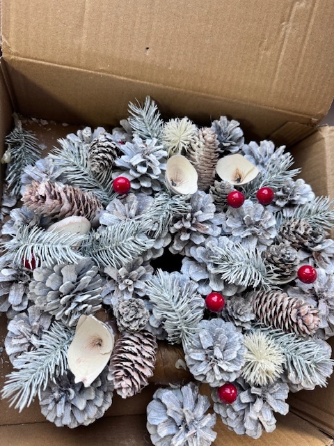 РОЖДЕСТВЕНСКИЕ УКРАШЕНИЯ: Наш великолепный рождественский венок поставляется с различными украшениями в деревенском стиле. Помимо матовой основы из сосновых шишек, в комплект входят 27 длинных сосновых шишек, 12 маленьких сосновых шишек, 6 деревянных завитков, несколько кустов сосновой хвои и 8 красных ягод падуба. Эффект инея/искусственного снега придает интерьеру дополнительный шарм. Праздничный белый цвет в сочетании с ярко-красными ягодами падуба привлекает внимание и обязательно произведет впечатление на ваших гостей.