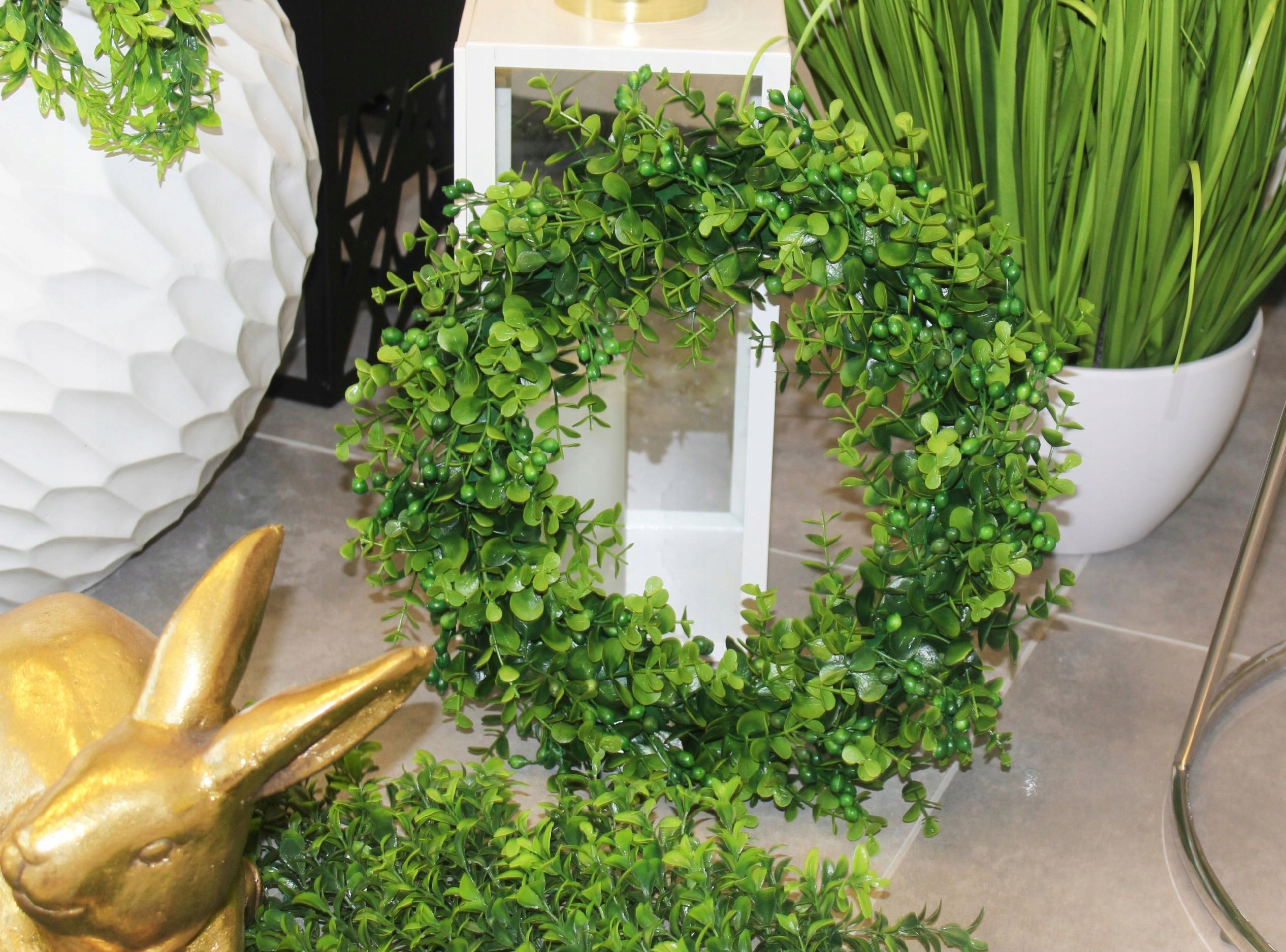 венок из пластиковых листьев и декоративных шариков, густоны.