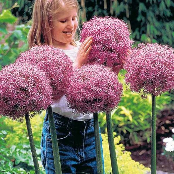 Один из самых высокорослых представителей декоративных чесноков, выращиваемых в садах. Листья чеснока изначально красиво-зеленые, но когда растение готовится к цветению, они начинают желтеть и отмирать. Цветочный стебель, поддерживающий шаровидное соцветие, может достигать 150 см в высоту. Гигантский чеснок ценится за внушительные размеры, сами соцветия не отличаются исключительными размерами (диаметр 12 см), но при посадке нескольких штук рядом друг с другом они создают эффектный эффект. Цвет и плотная форма соцветия очень выразительны, цветет чеснок-гигант летом, в июне и июле. После цветения, как и все чесноки, он теряет надземную часть и переходит в состояние покоя. Гигантский чеснок, вероятно, станет одним из самых впечатляющих растений на клумбах благодаря размеру и окраске своих цветков. Соцветия также можно срезать, поскольку они очень прочные и сохраняют свежесть в вазе несколько недель. Лучше всего смотрится при посадке группами по несколько штук. В упаковке 5 семян.