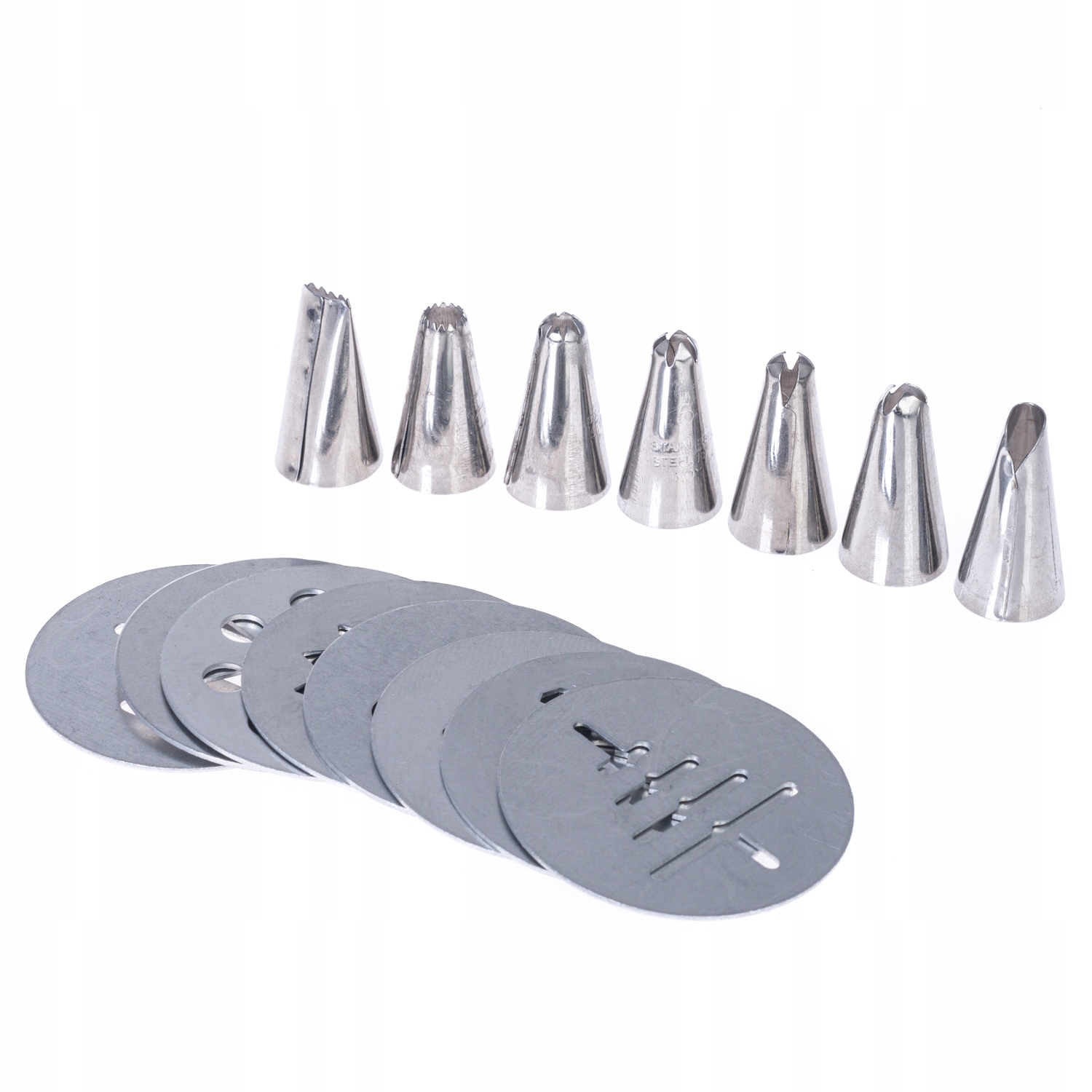 Изготовлен из высококачественной стали, отполированной известной немецкой компанией. Оснащена 8 дисками для печенья и 8 насадками, которые позволяют украшать сладкие лакомства. Легко чистить и использовать. Вы можете наполнить декоратор вкусным кремом для начинки печенья, а также горчицей или майонезом. Идеально подходит для праздничной выпечки.