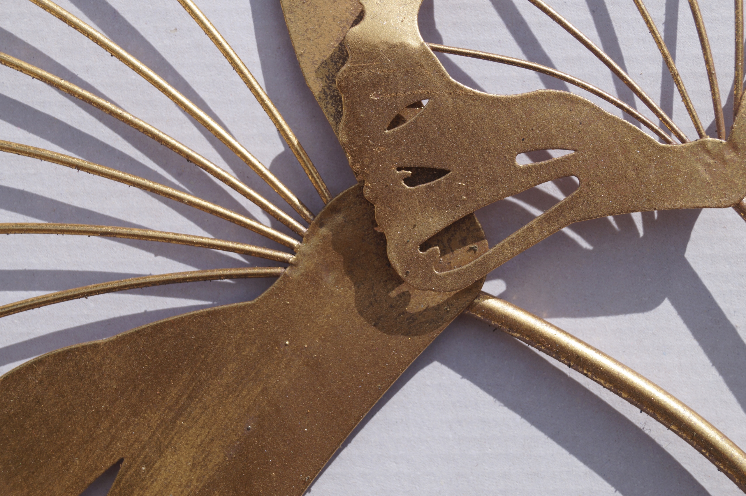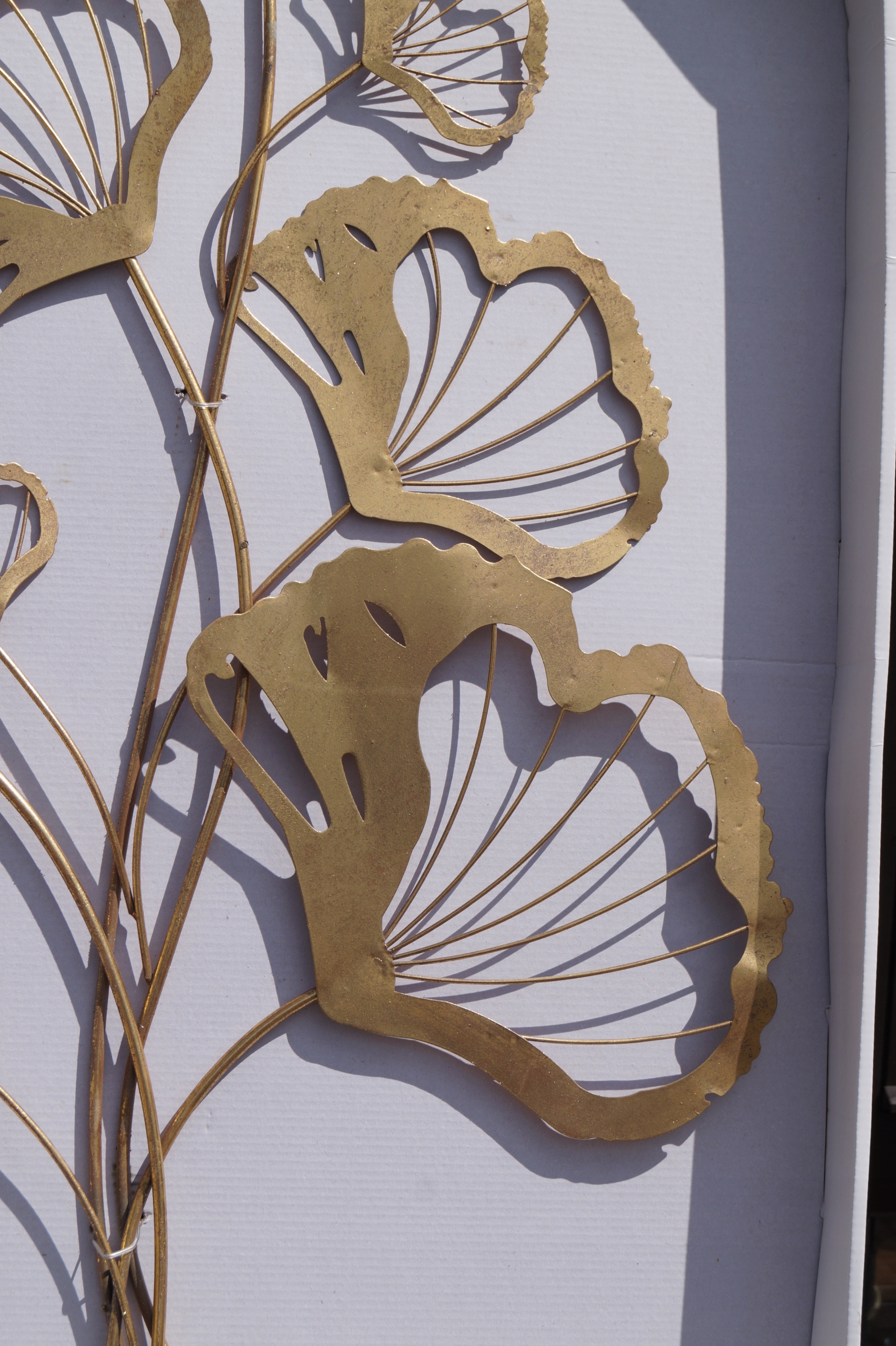 Металлическая настенная декорация с мотивом листьев гинкго, цвет золота.