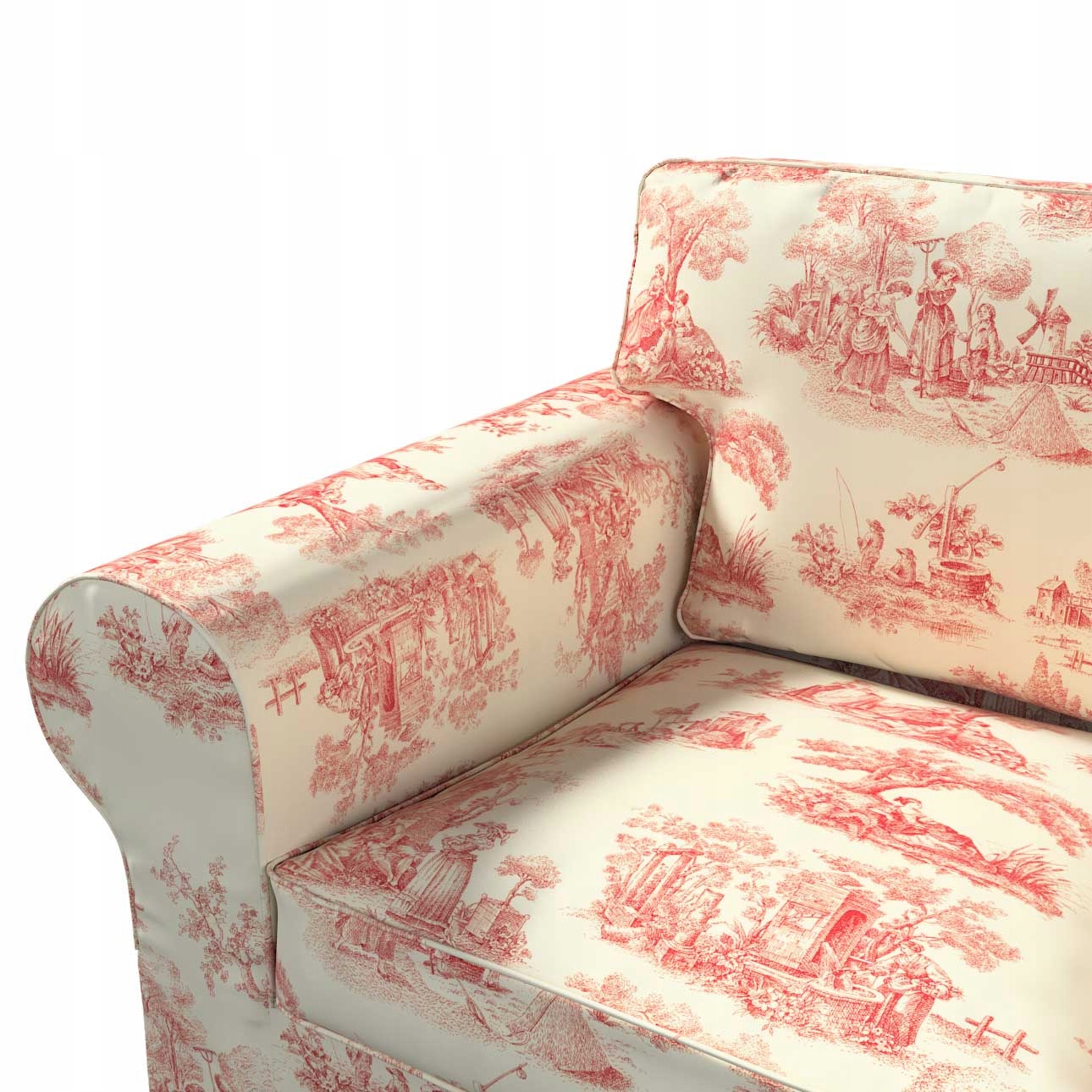 Чехол на 2-местный диван Экторп, складной, модель до 2012 года, 195 х 90 х 73 см, фон экрю, красные фигурки, коллекция Avinon