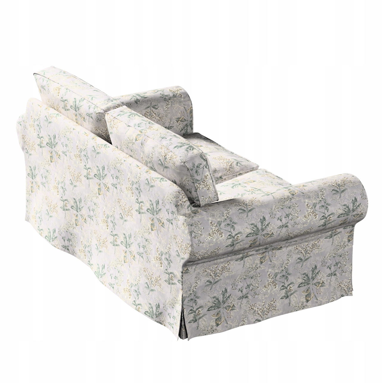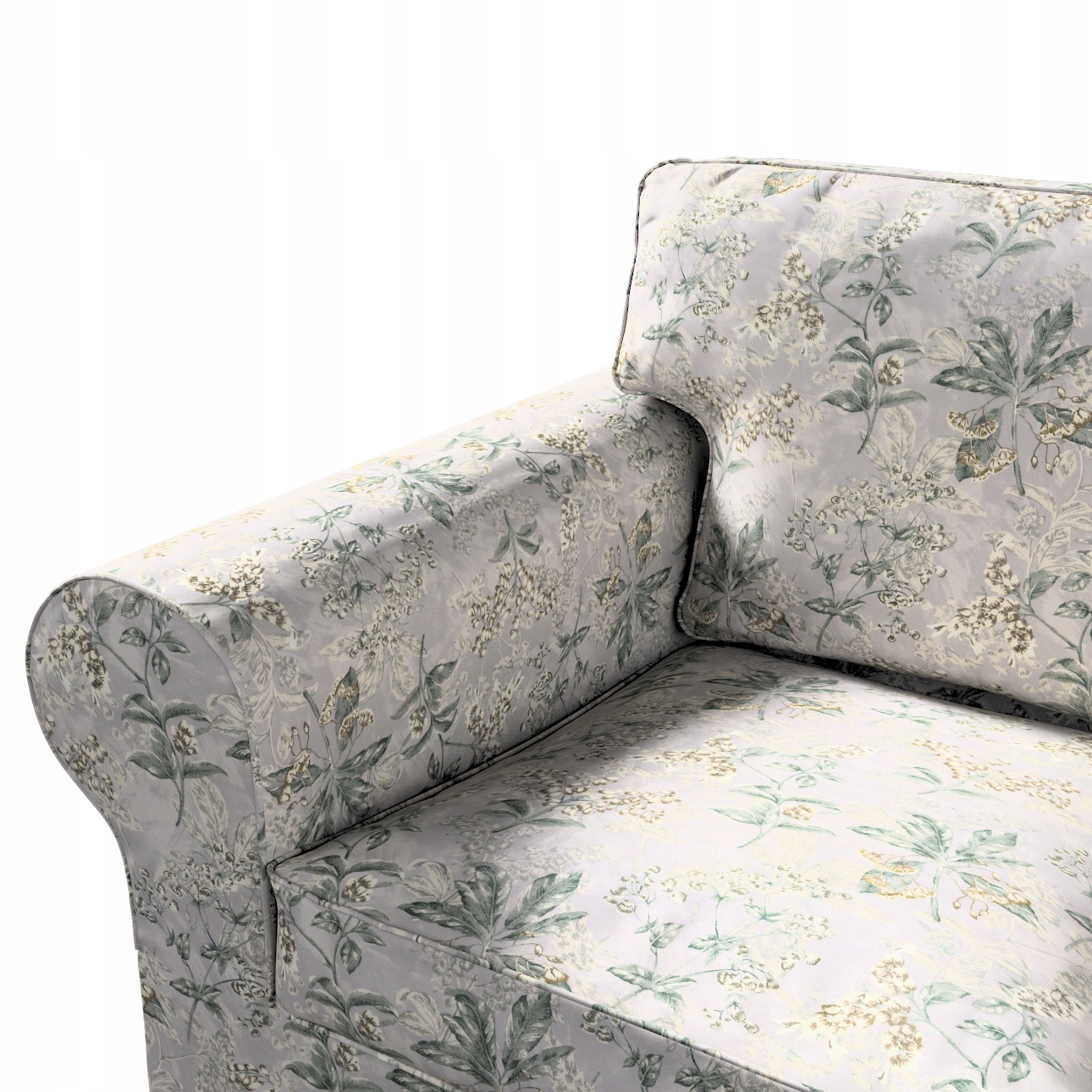 Чехол на 2-местный диван Экторп, складной, модель до 2012 года, 195 х 90 х 73 см, оливково-бежевые растения на сером фоне, коллекция Londres