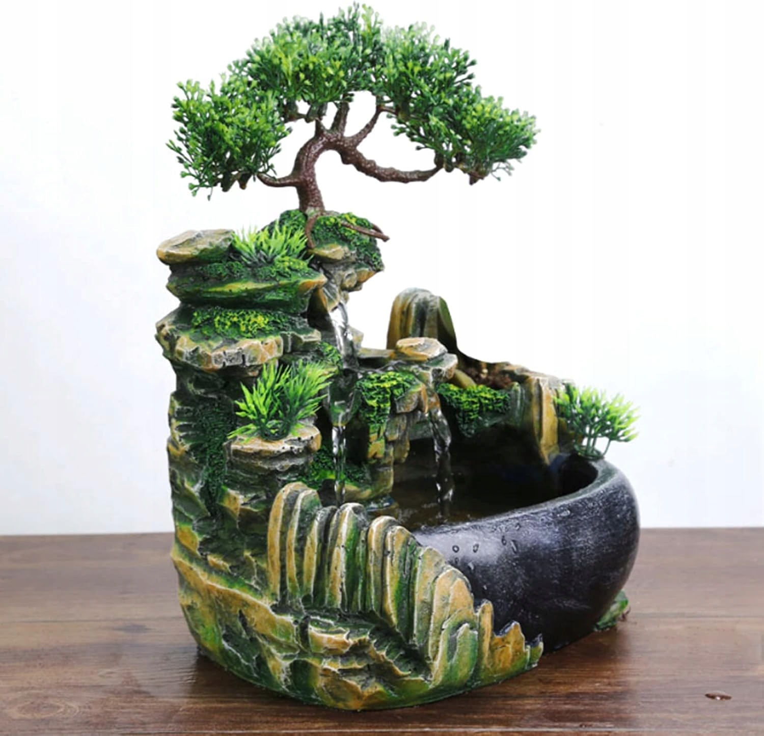 Красиво оформленный: в этом комнате фонтан использует моделирование смоделированного ландшафта, богатого камнями, деревьями, фонтаном, естественными и реалистичными бассейнами; Эффект деликатной атомизации заставляет фонтан на столе казаться более оживленным и вызывает чувство близости с природой. При моделировании смоделированного ландшафта есть деревья и камни, и вода течет через фонтан.