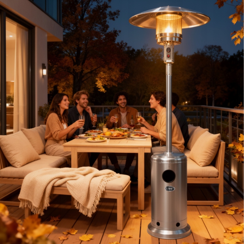 DeKraft INOX Terrace Heater 13 кВт — это эффективный газовый обогреватель, который обеспечит тепло, комфорт и стиль в вашем саду, на террасе, в ресторане или кафе.