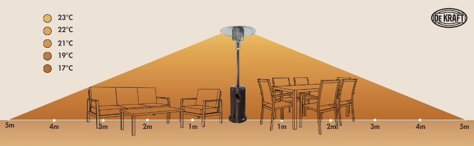 Благодаря террасному обогревателю DeKraft 13900 вы сможете продлить сезон барбекю, встреч с семьей и друзьями, а также обеспечить комфортные условия для гостей в ресторане сад. Просто включите пьезоэлектрический запал, и через несколько секунд почувствуете приятное и стабильное тепло.