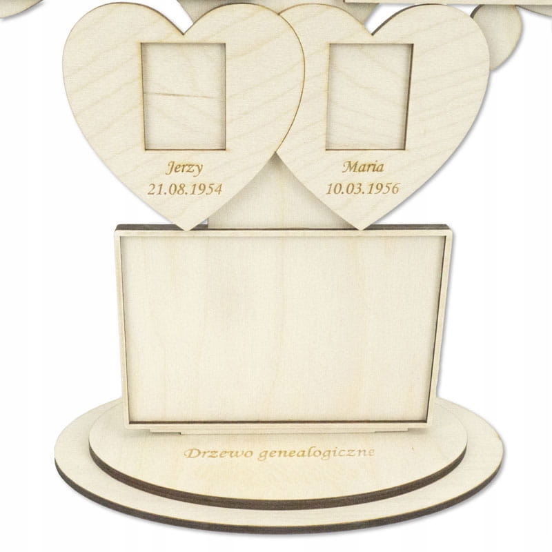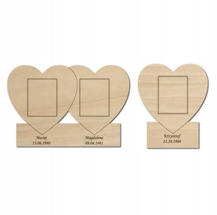 - С гравировкой: основание + рамка, + 5 одинарных сердец + 4 двойных сердца и гравировка на подставке - всего 95 злотых.