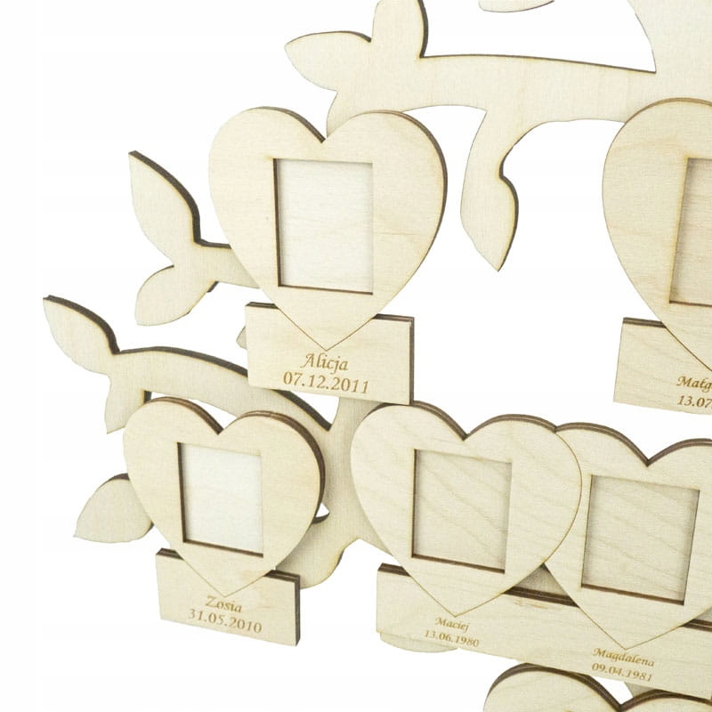 В базовую цену входит основа-дерево с основой, 4 шт двойных сердечек и 5 шт одинарных сердечек (без гравировок). Только тогда вы сможете сопоставить с ним все отдельные ветки семьи и склеить их самостоятельно - в наборе есть клей Wikol, так что вы сможете расположить членов семьи.