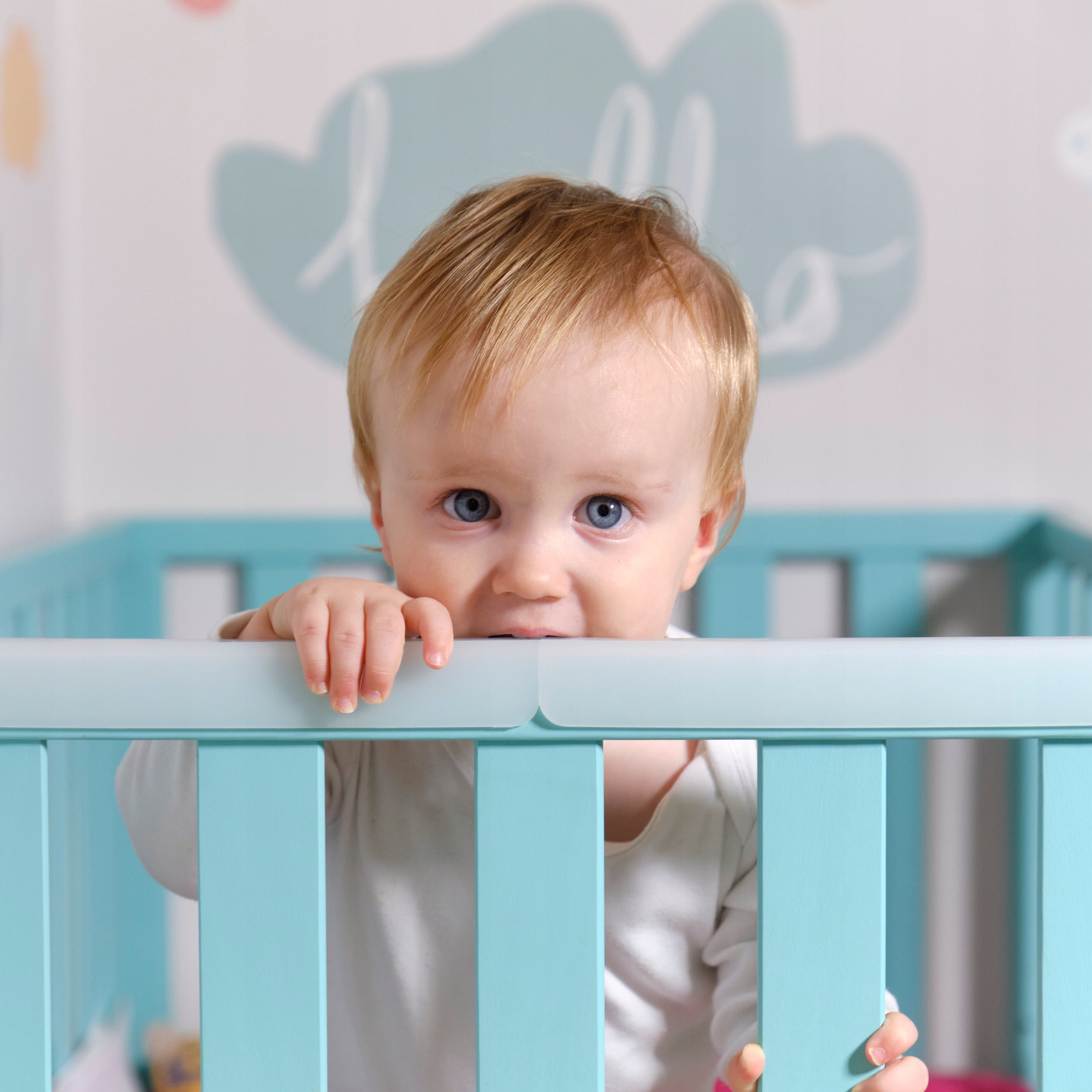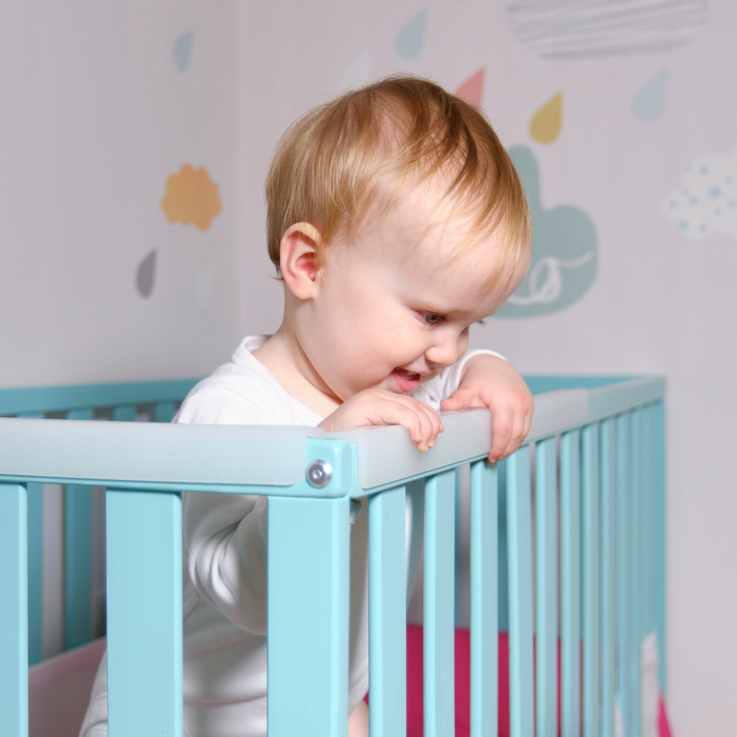 Защитник можно легко скользить по краю кроватки без необходимости клей.