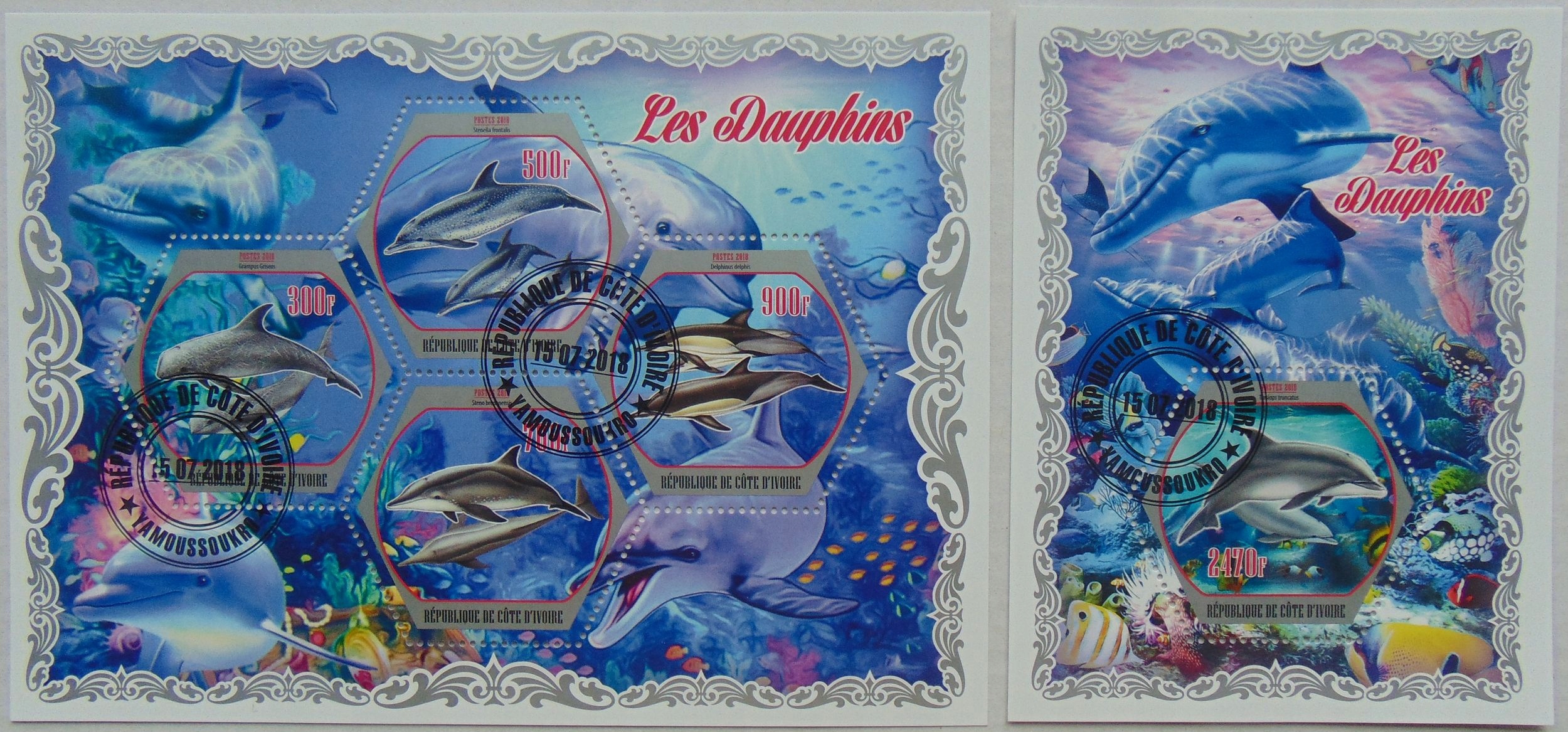 Дельфіни ссавці Кот-д'Івуар аркусік + блок № 08186a-b