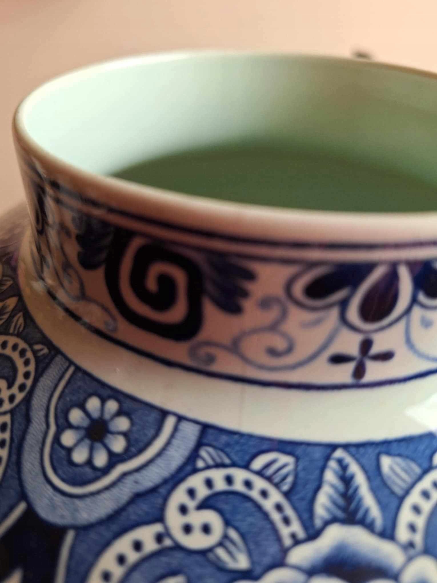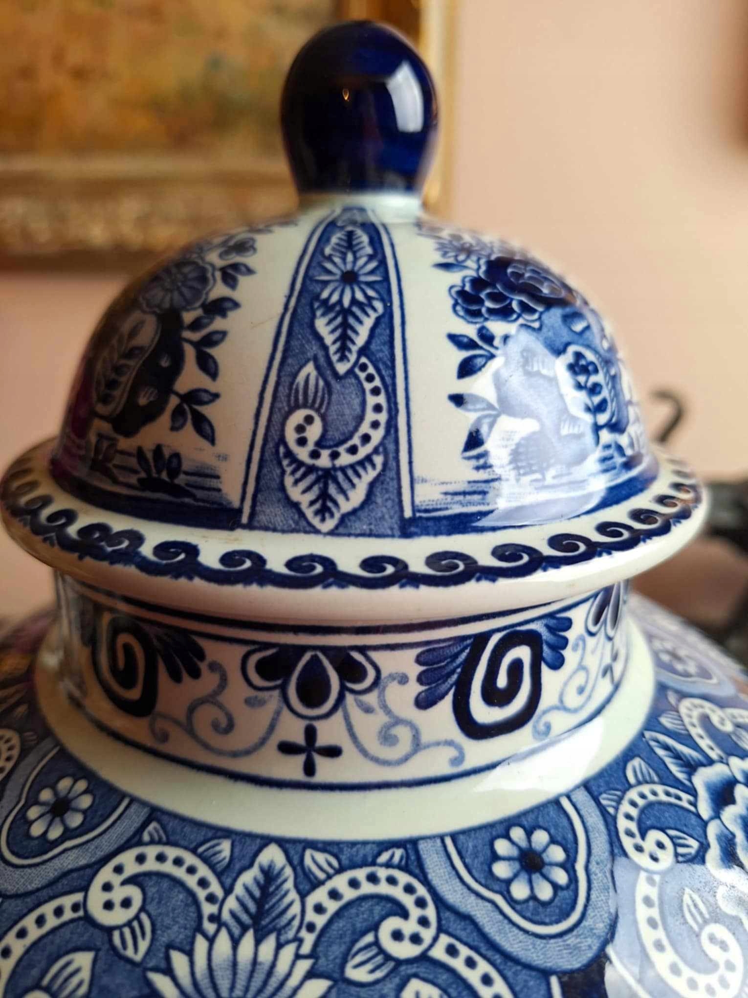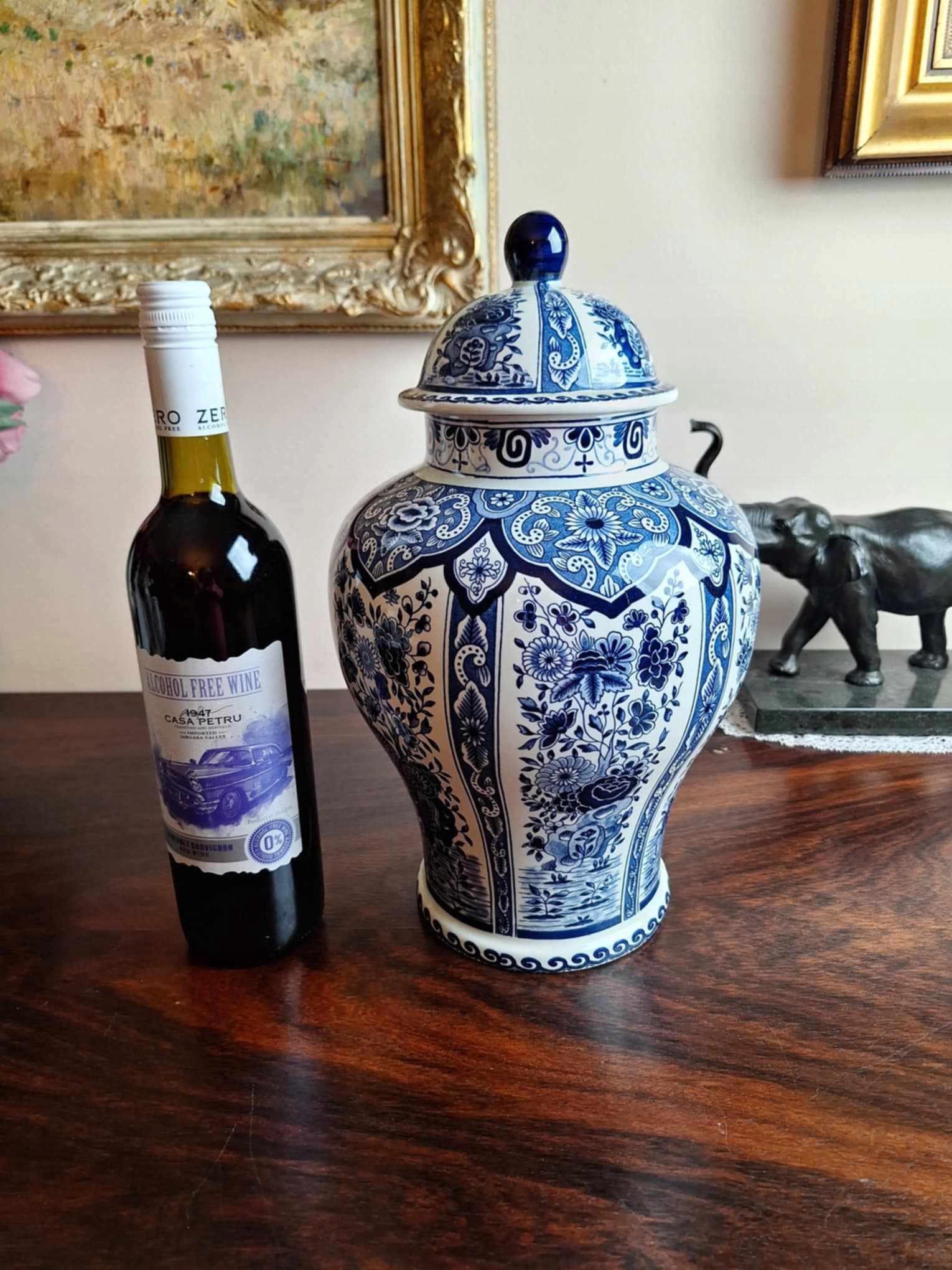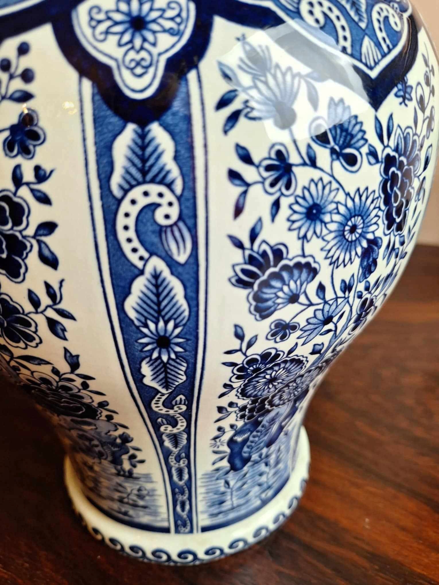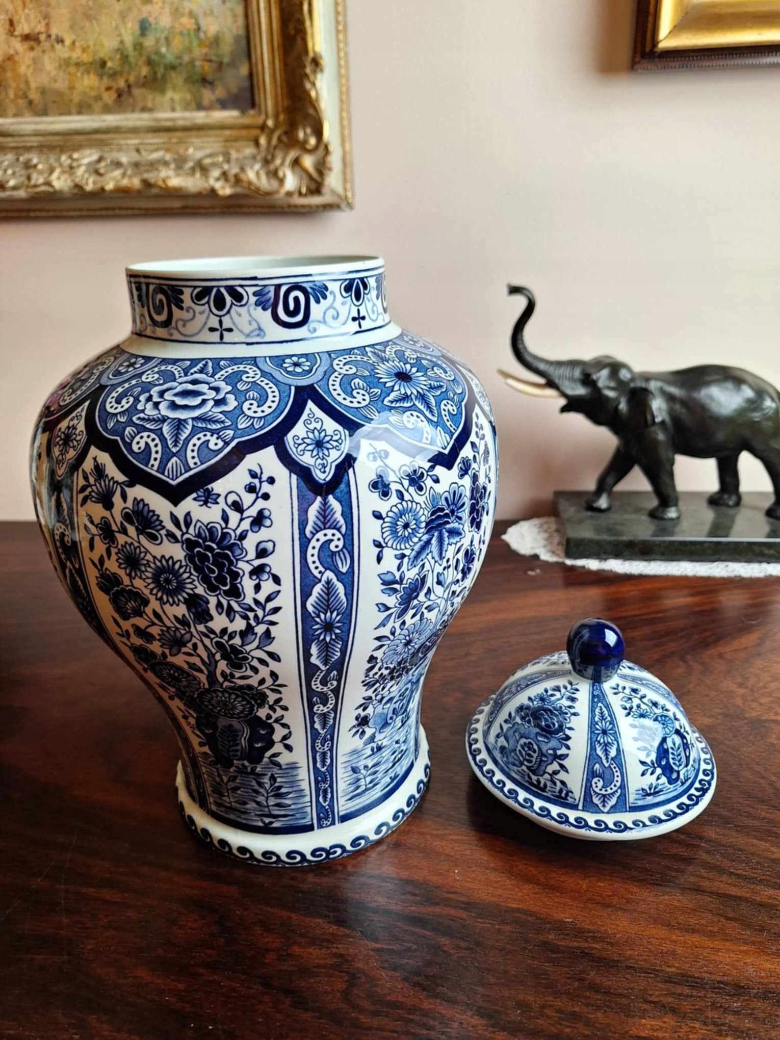 DELFTS PĘKATA DUŻA AMFORA Z POKRYWĄ ZDOBIONA KOBALTEM