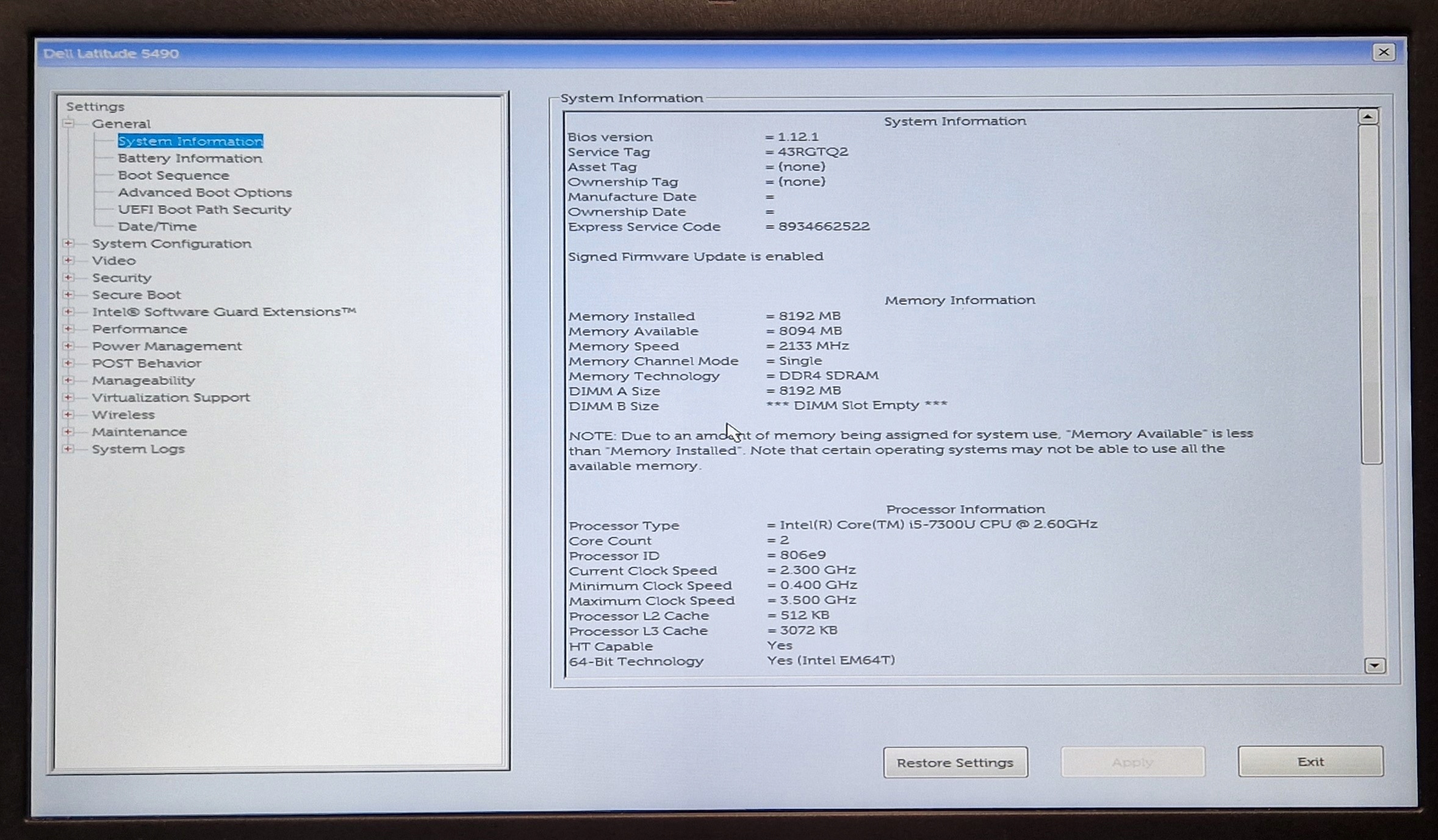 Dell Latitude 5490 LA-F401P CPA процессор i5-7Gen