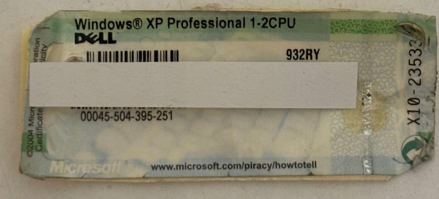 DELL NAKLEJKA NA KOMPUTER WINDOWS XP PROFESSIONAL