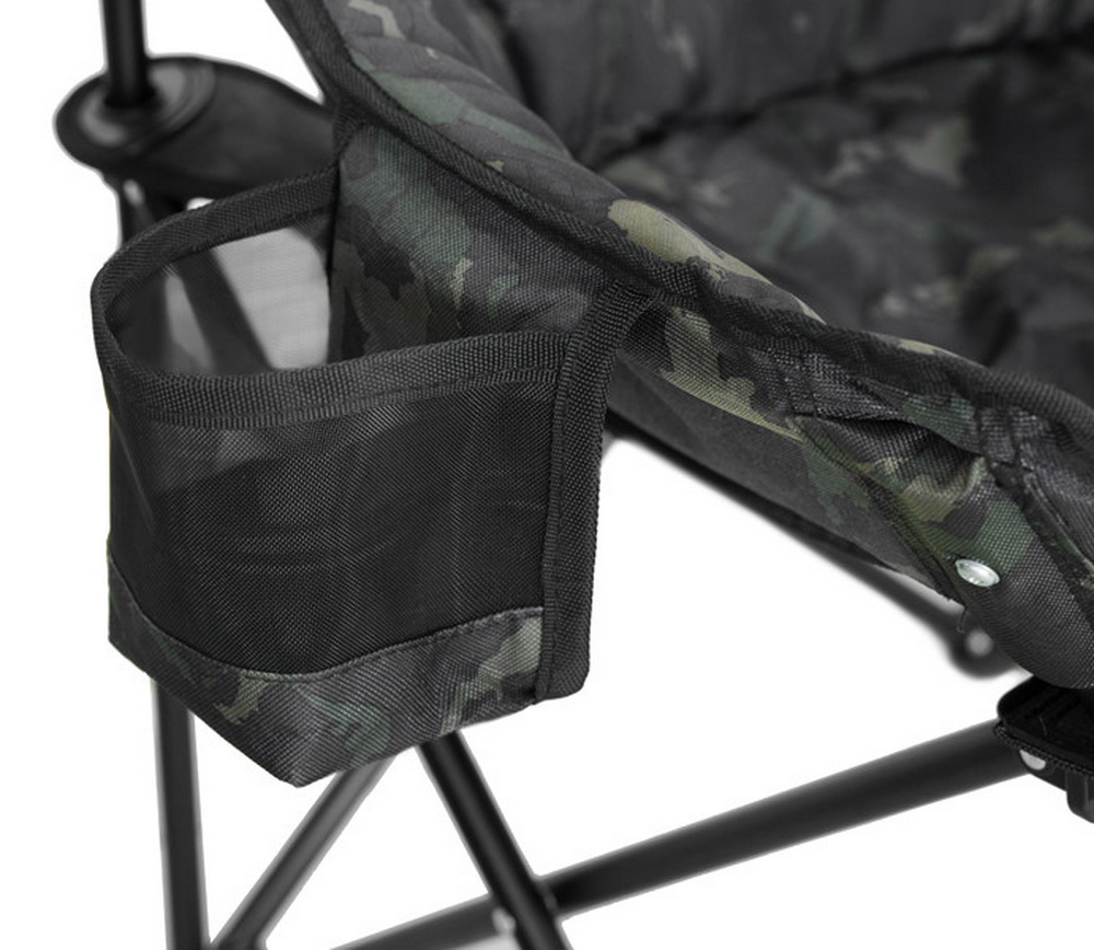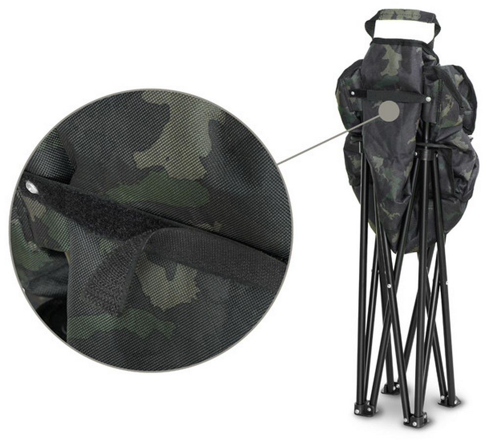 Комфорт обеспечивается мягкой подкладкой внутри и по периметру матраса. Покрытие сделано из прочного материала 600D, с печатным оригинальным камуфляжем Banx, который придает стулу уникальный вид и повышает его сопротивление интенсивному использованию.