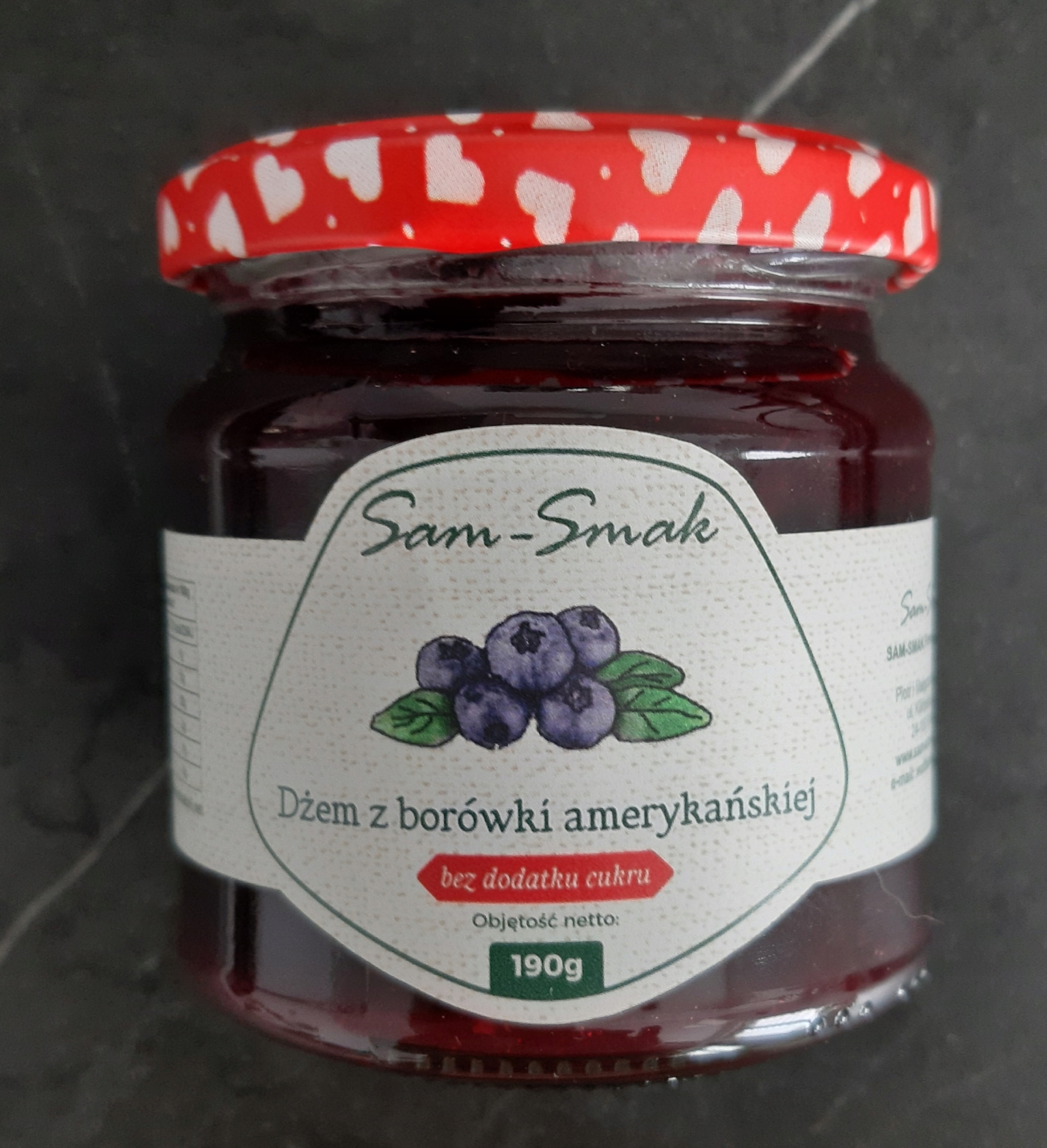 Dżem z borówek amerykańskich BEZ DODATKU CUKRU 190 gram, domowy