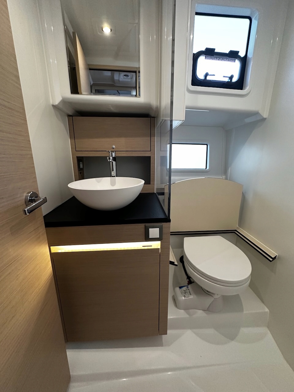 Версия 4: Интерьер из белого дуба, ламинированные полы в стиле коричневого дуба, 2 каюты, 1 туалет, отдельная комната с душем