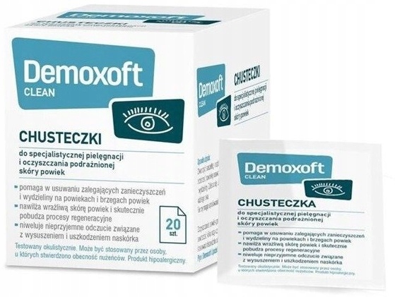 DEMOXOFT CLEAN – уникальный продукт, предназначенный для профессиональной защиты и ухода за кожей век. Активные ингредиенты, содержащиеся в салфетках, успокаивают зуд и жжение, ускоряют процессы регенерации эпидермиса, успокаивают раздражения, создают защитный слой и обеспечивают комплексное увлажнение раздраженной кожи. Идеально подходит для ежедневного ухода за глазами.