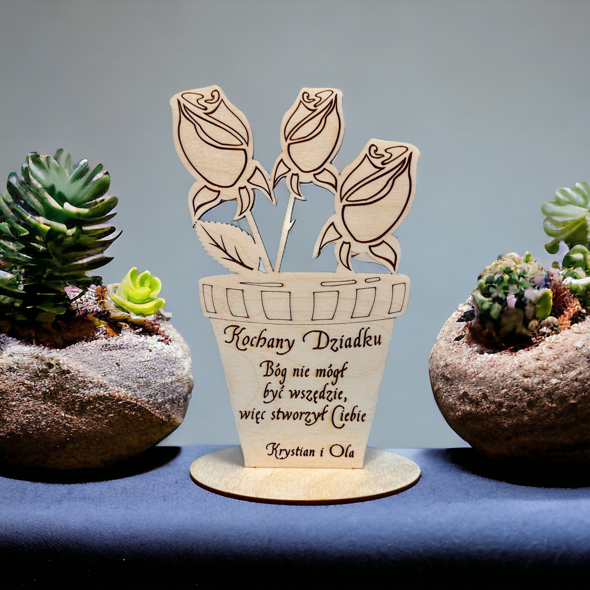 День бабусі, квіти - прикраса лазерним гравіюванням, польська ручна робота