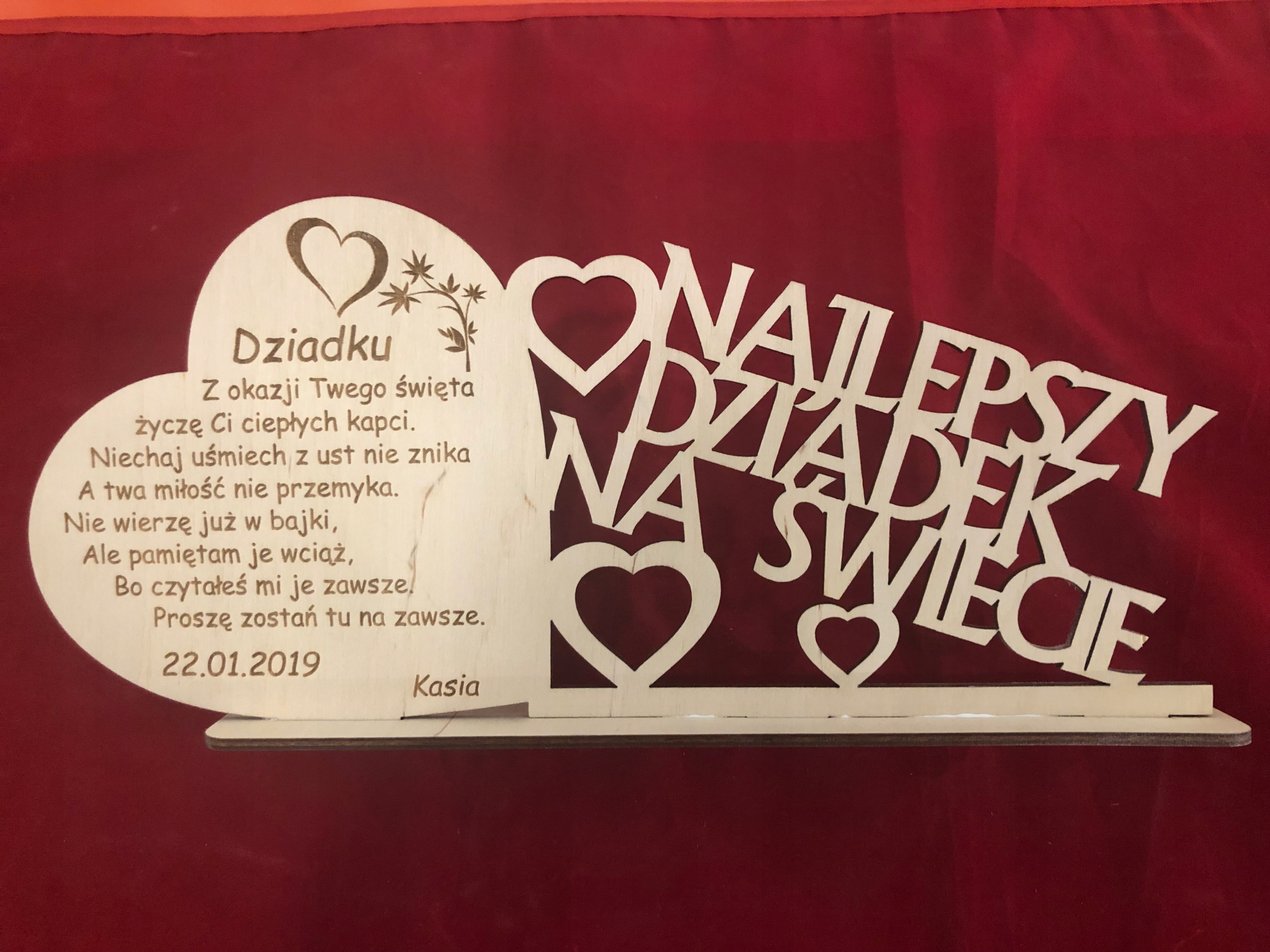 Красиво выгравированные лазером и вырезанные из фанеры поздравления ко Дню бабушки и дедушки. Глубокая и четкая гравировка гарантирует, что надписи не потускнеют со временем.