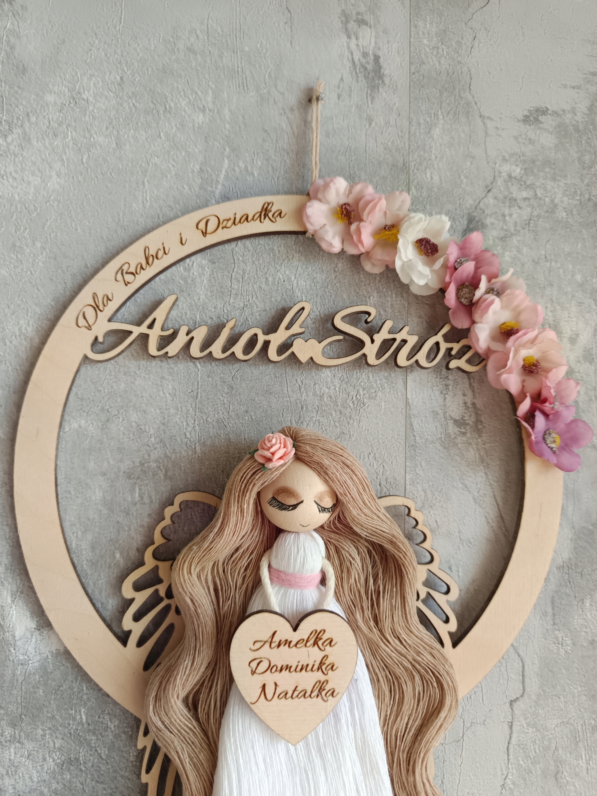 Добро пожаловать в предложение о продаже - ангел на ободе 20 см с деревянными крыльями с надписью «Ангел -Хранитель». На ободе есть гравюра для бабушки и дедушки. (Там может быть любая гравюра) Ангел может быть прекрасным оригинальным подарком для любых случаев, таких как крещение, год, причастие, рождение. Макрама упакована в обычную коробку. Дополнения цветов могут быть небольшими различиями в зависимости от доступности. Ангел упакован в обычно транспортную коробку