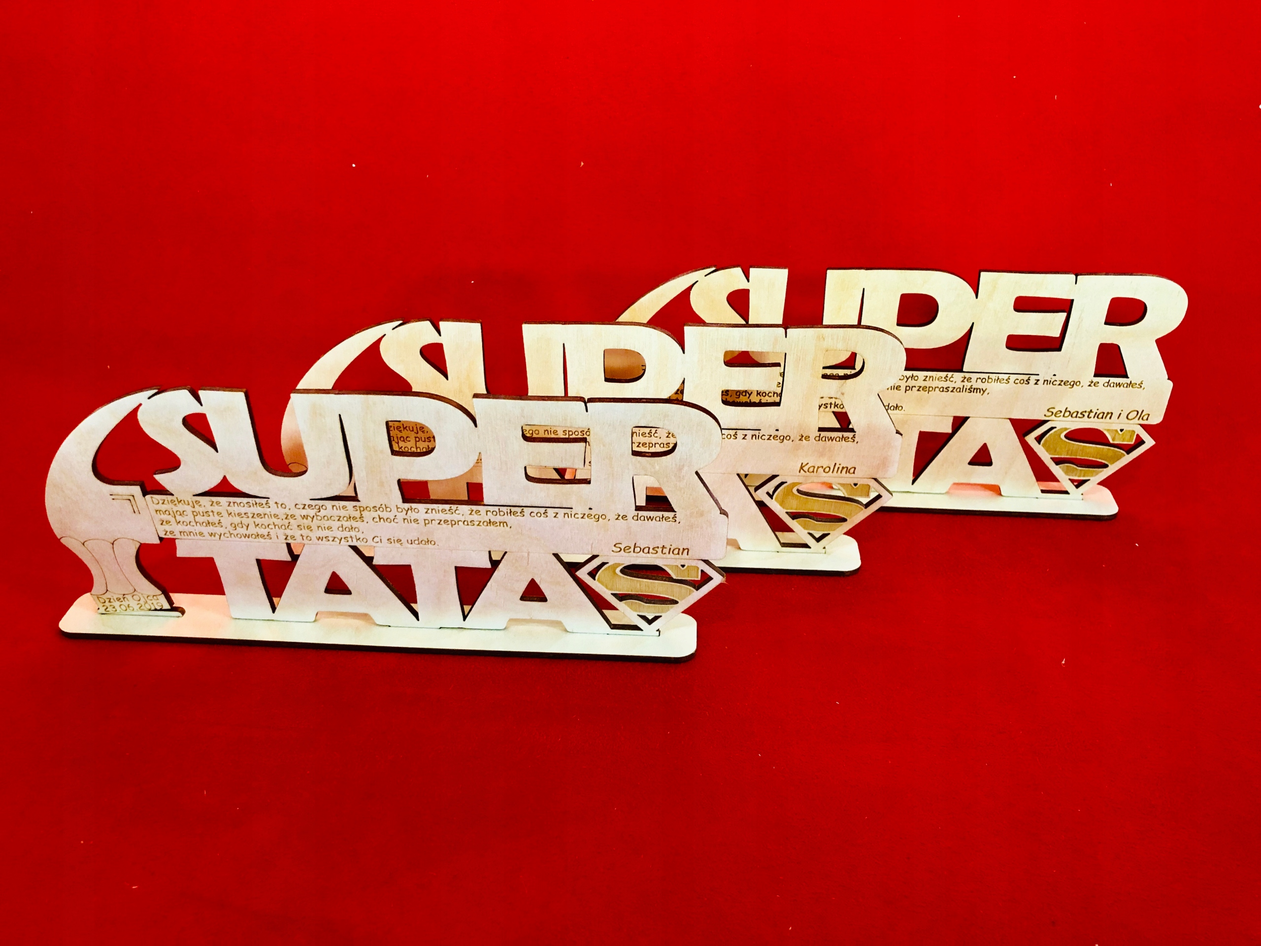Красиво выгравированные лазером и вырезанные из фанеры поздравления ко Дню отца.