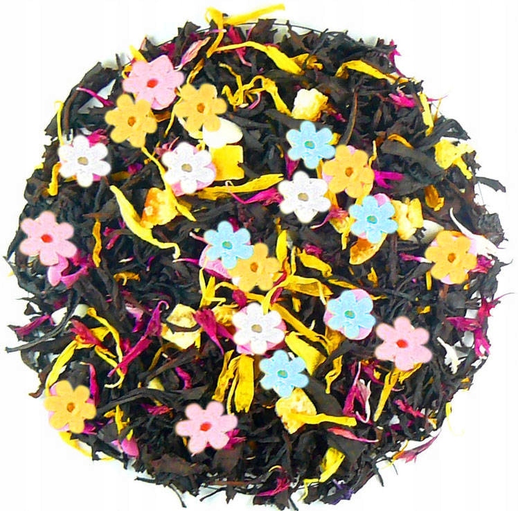 Красивый и вкусный чай, созданный для благодарности. Черный чай с добавлением изюма. Цвета добавляют календула, черничные цветочные хлопья. Целое обогащено сахарными украшениями, которые добавляют очарование.
