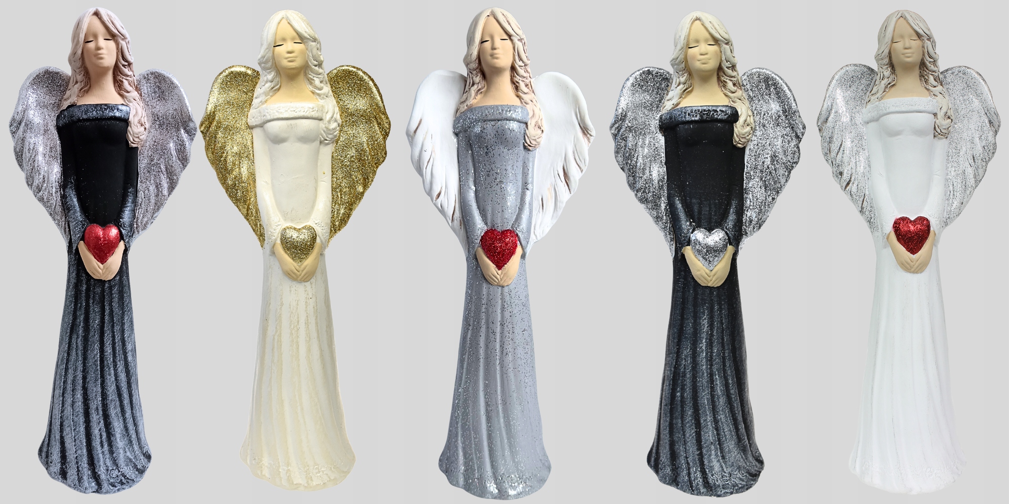 - Ангел из гипса, размеры 34 см х 13 см, чёрный, крылья с серебряными блестками, сердце с красными блестками.