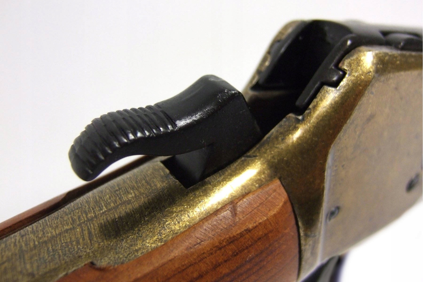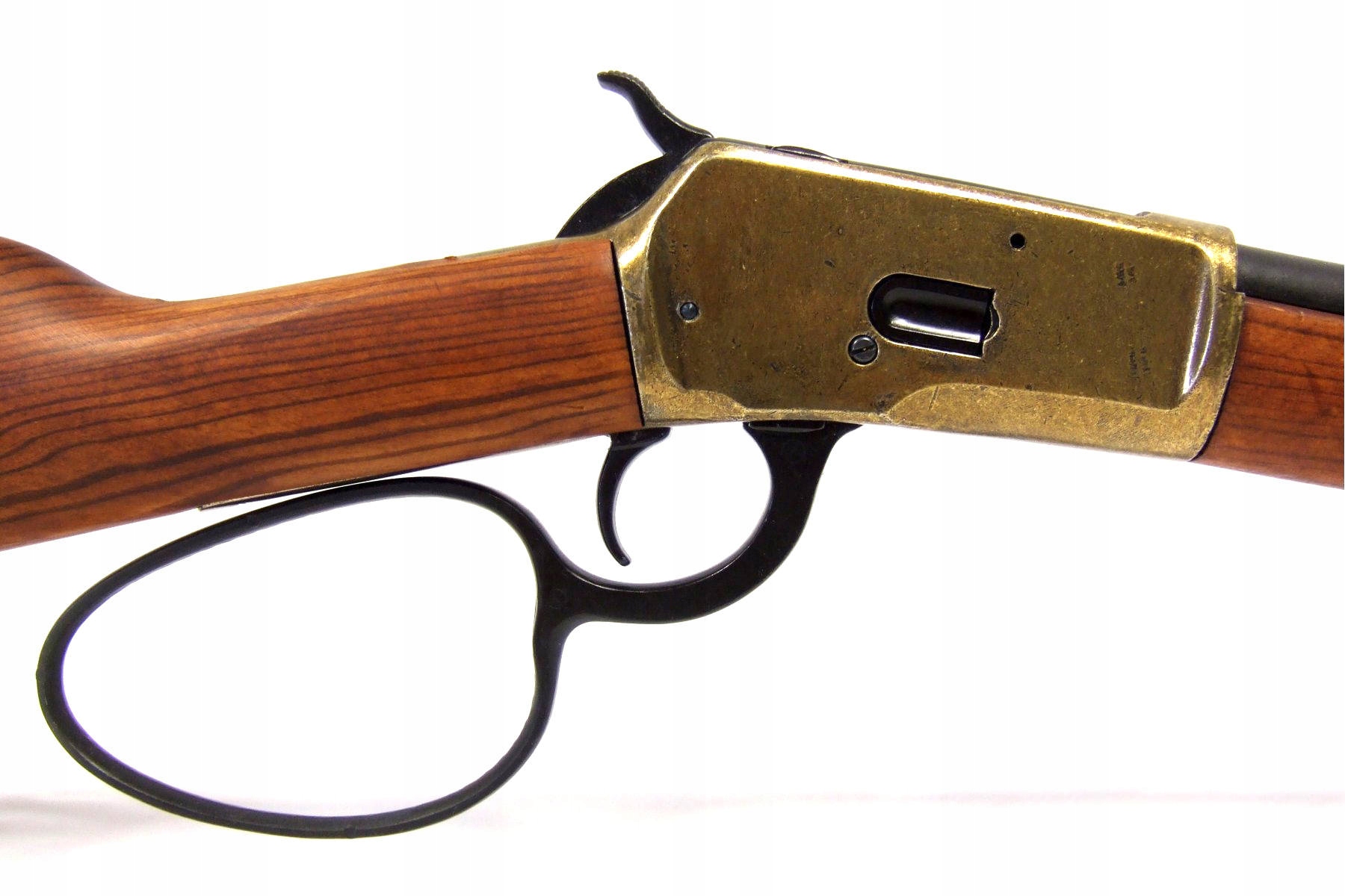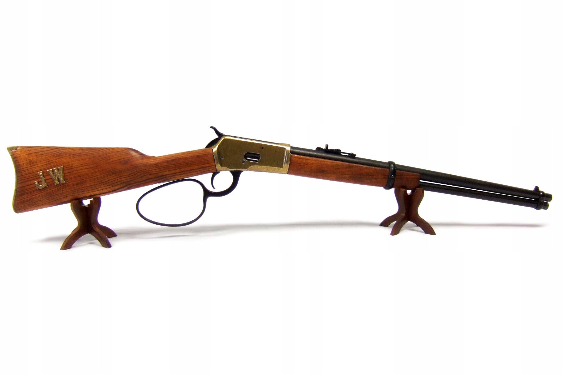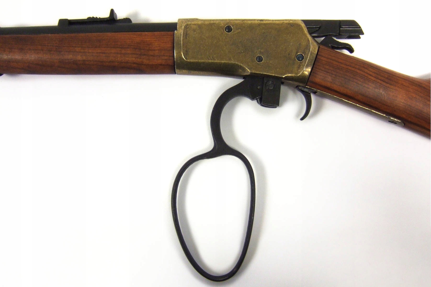 Металлическая копия винтовки Winchester M1892 производства известной компании Denix. Реплика не содержит каких-либо существенных частей оружия, и ее невозможно переделать в огнестрельное оружие, поэтому она полностью безопасна и легальна, не требует регистрации или разрешения. Он изготовлен из металла и дерева. Он имеет эффективный рычажный механизм, поэтому после перезарядки можно вернуть так называемый холостой выстрел. На стволе имеется подвижный прицел, регулируемый по вертикали и горизонтали латунным штифтом. Оно приобрело огромную популярность среди охотников, ковбоев и поселенцев. Он идеально подходил для боевых действий и охоты на среднюю дичь. Он отличался солидным качеством изготовления и, следовательно, долговечностью. Он до сих пор используется современными охотниками в Северной Америке. Этот Винчестер понравился знаменитому актеру Джону Уэйну, который использовал эту винтовку в большинстве своих воплощений в вестернах. Представленная винтовка продается без подвесов.