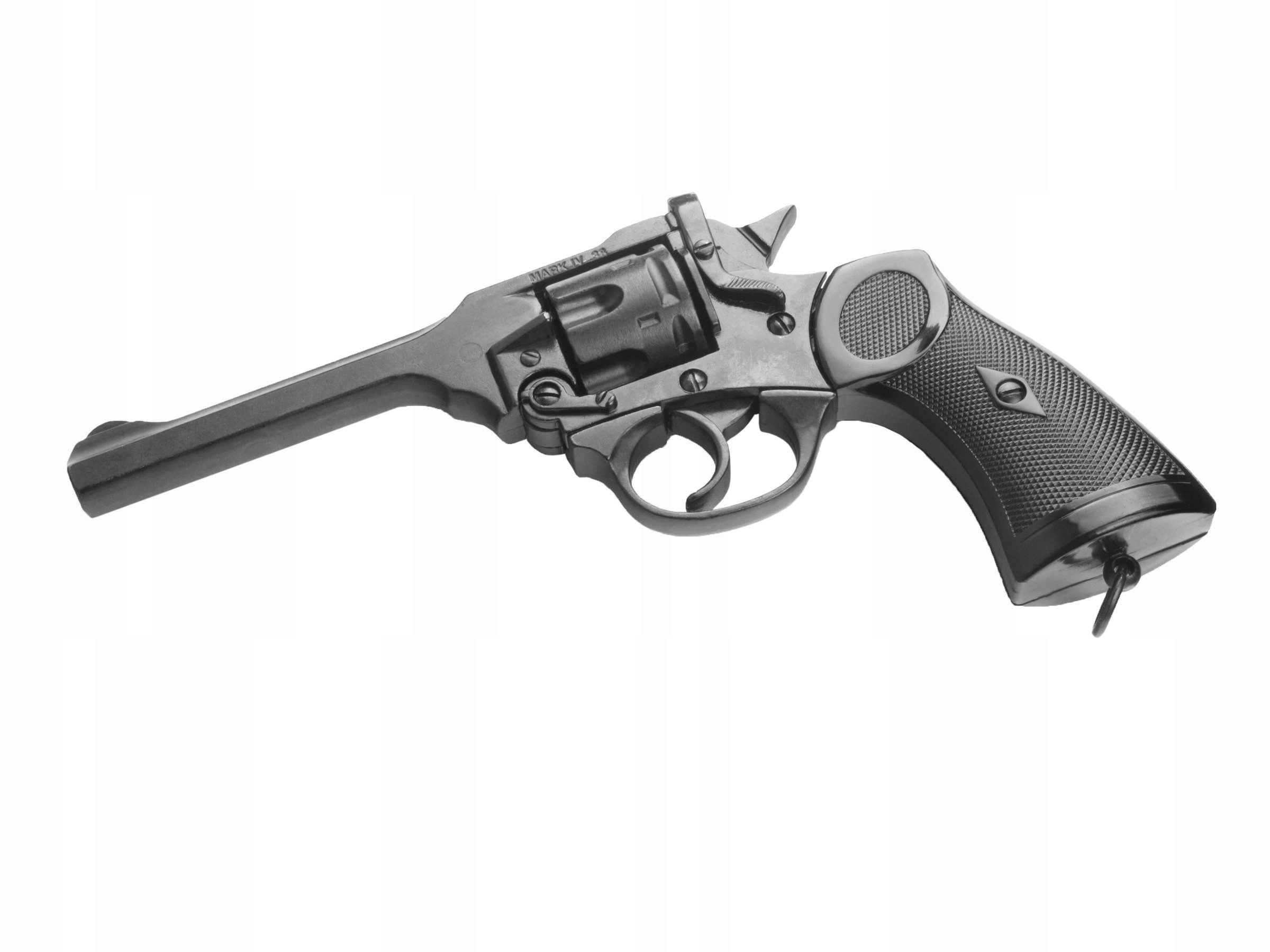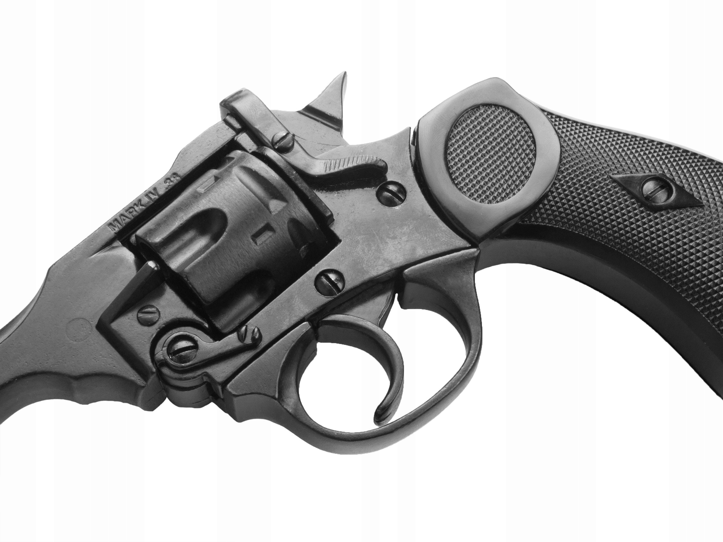 Отличная металлическая копия британского револьвера Webley Mk. IV, использовавшийся войсками Британского Содружества во время Второй мировой войны. Реплика изготовлена из металла, в револьвере можно вытащить курок и произвести сухой выстрел. Реплика не содержит каких-либо существенных частей оружия и не подлежит переделке в огнестрельное оружие, поэтому полностью безопасна и не требует разрешения или регистрации.