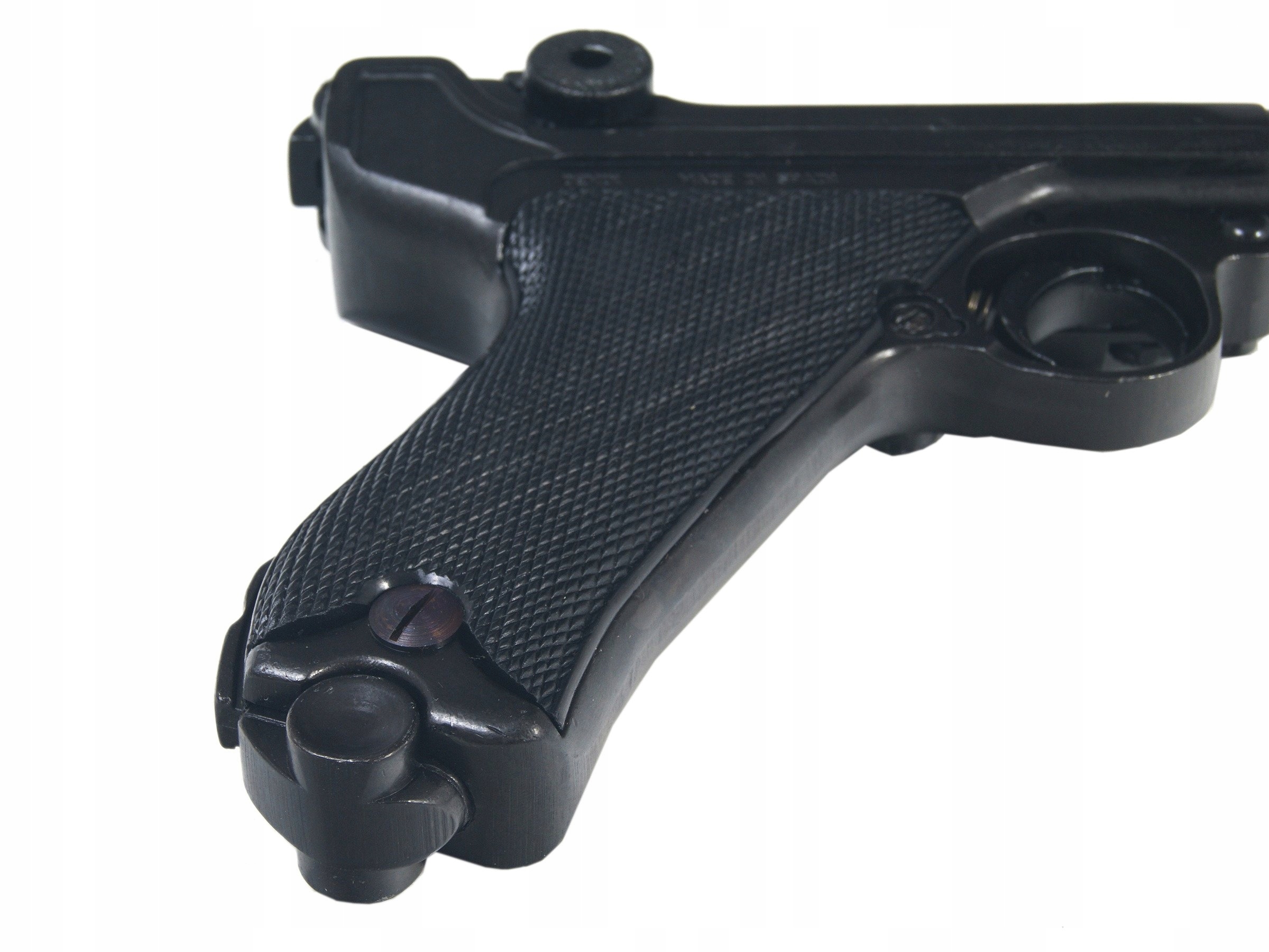 Металлическая копия легендарного пистолета Р 08, также называемого Люгером или Парабеллумом. Он не содержит каких-либо важных частей оружия, поэтому полностью безопасен. Вы можете вернуть так называемую холостой выстрел. Функциональные элементы - магазин, курок и спусковой крючок подвижны и могут перезаряжаться. Этот пистолет создан как развитие пистолета С93 конструкции Хьюго Борхардта (первого пистолета, оснащенного сменным магазином в рукоятке).