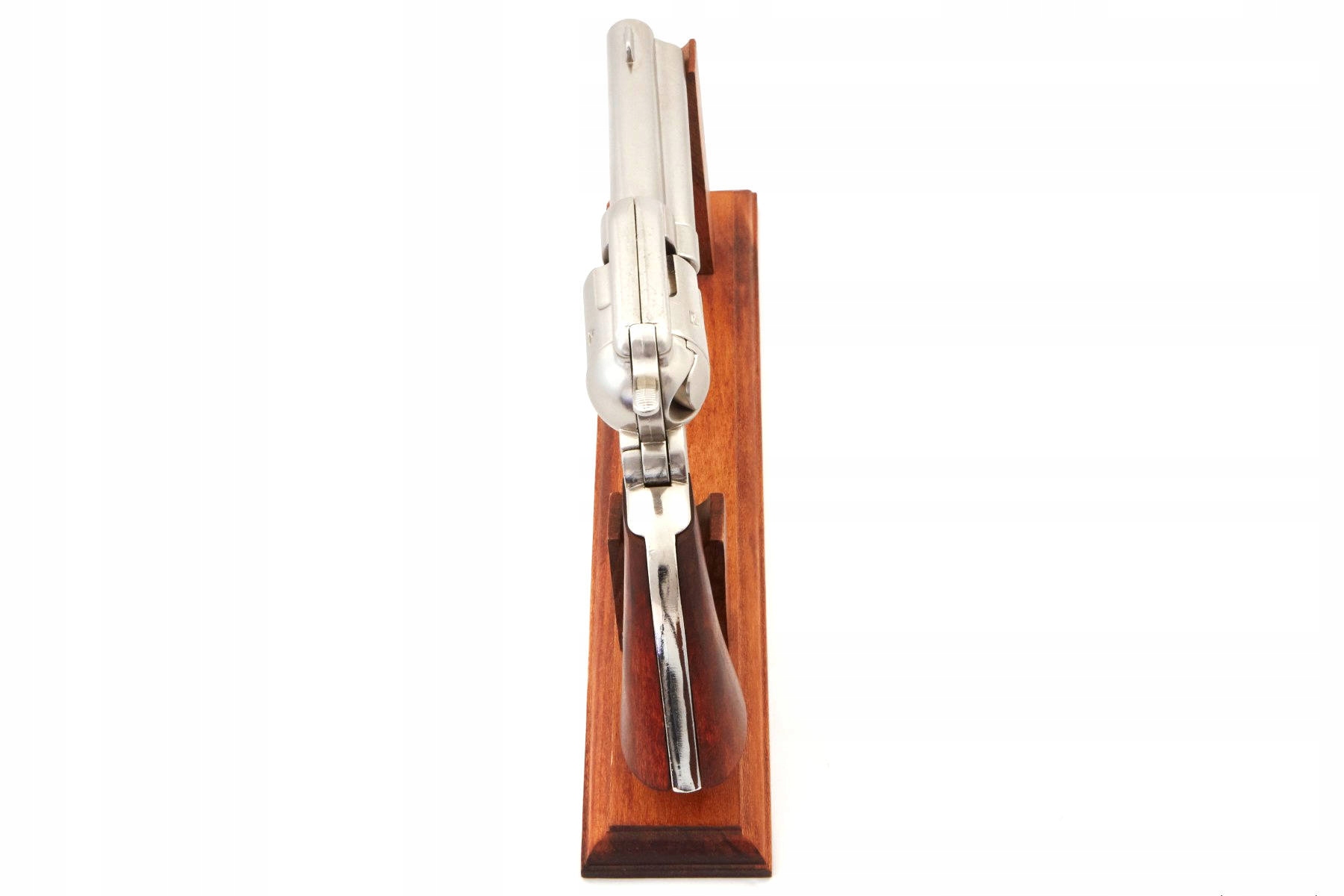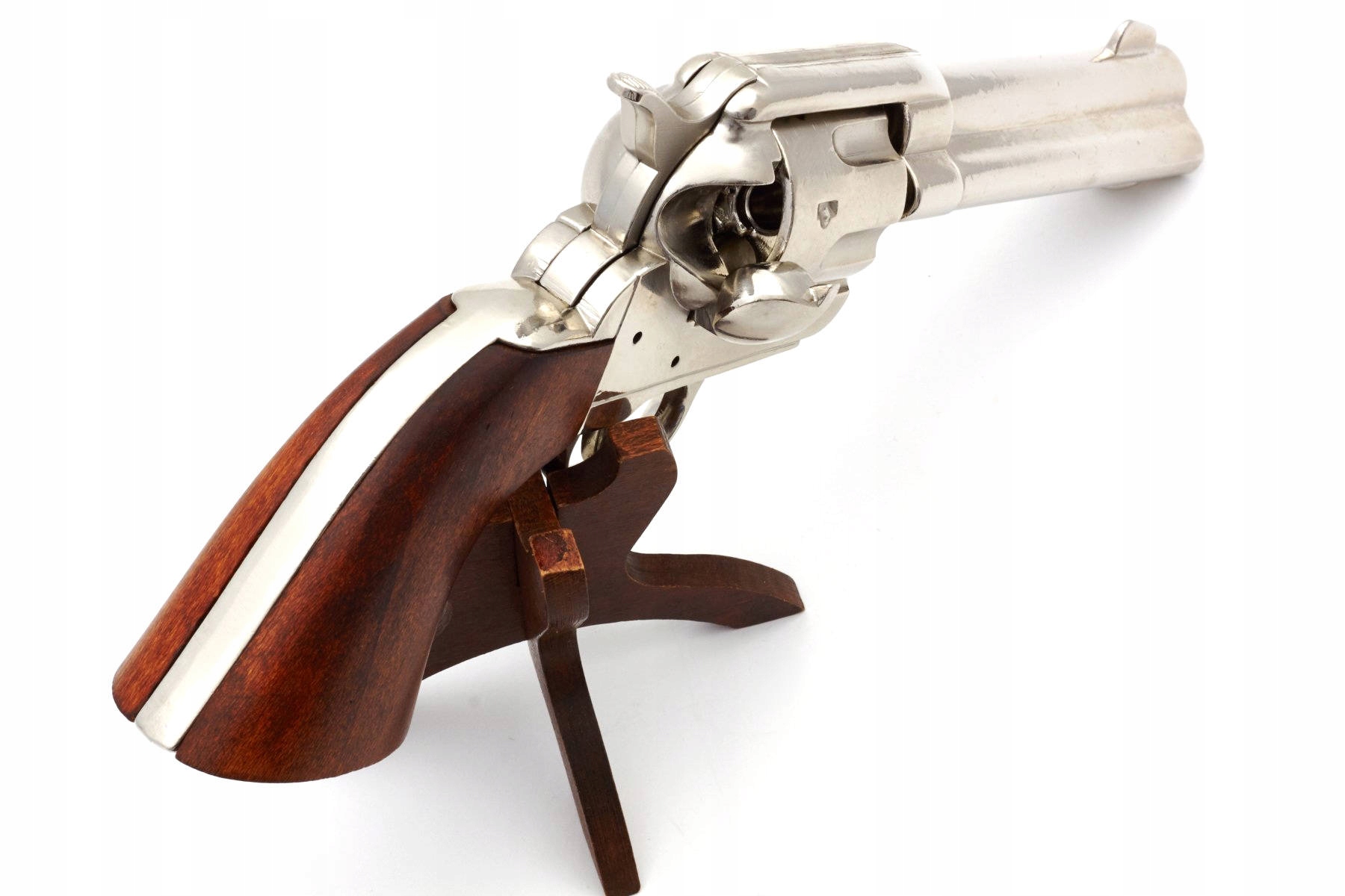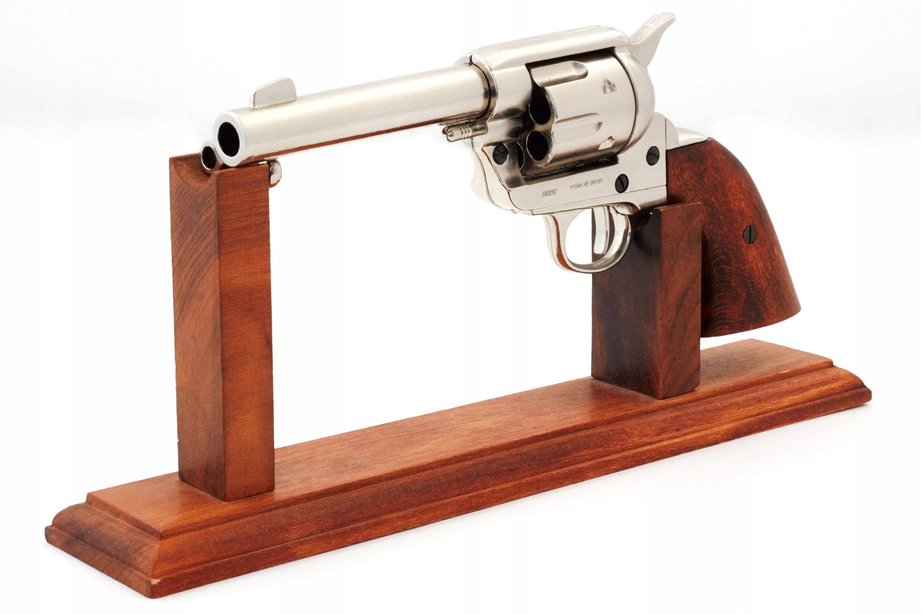 Реплика револьвера «Миротворец» .45 1886 года выпуска известной компании Denix. Реплика не содержит каких-либо существенных частей оружия, и ее невозможно переделать в огнестрельное оружие, поэтому она полностью безопасна и легальна, не требует регистрации или разрешения. Он изготовлен из полированного дерева и металла. Механизм, оснащенный подвижным спусковым крючком и краном, позволяет стрелять так называемыми сухой выстрел.