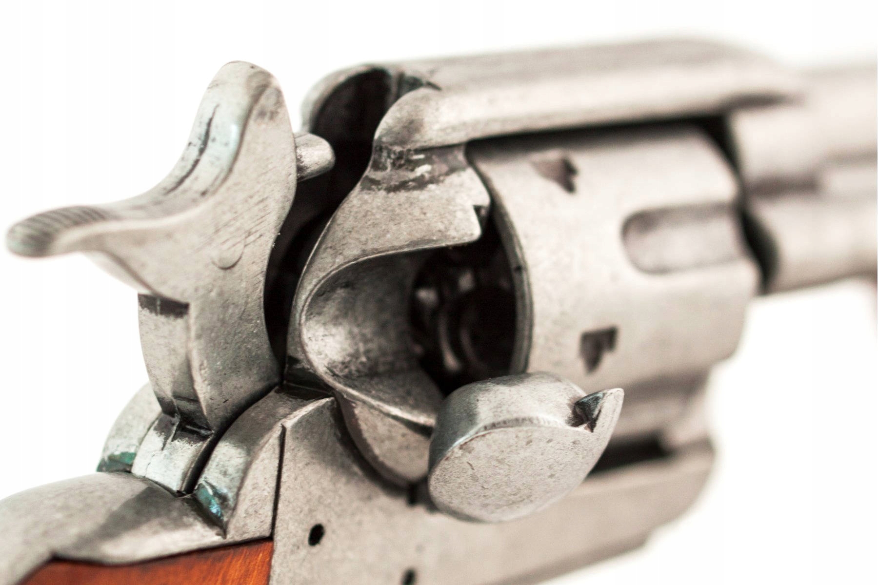 Легендарный револьвер Дикого Запада, произведенный на заводе Кольта. Сэмюэл Кольт, конструктор оружия, около 1836 года изобрел скорострельный ударный револьвер с пятикамерным барабаном. Первоначально это было оружие с черным порохом. Револьверы Кольта использовались обеими сторонами во время Гражданской войны. Представленная модель была создана в 1872 году, а в 1873 году принята на вооружение американской армии под названием «Армия единого действия». На сегодняшний день компания Colt's Manufacturing Company является одним из крупнейших производителей огнестрельного оружия всех типов. Кольт Single Action Army, созданный на основе оригинала XIX века, производится до сих пор. Его продукция используется, в частности, американской армией и полицией.