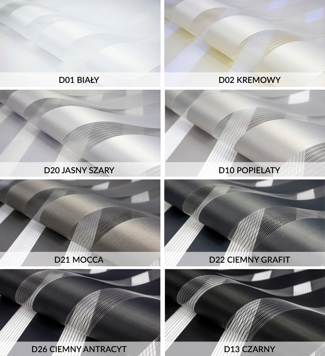 <ул>Ниже на аукционе вы найдете самый большой выбор цветов ткани для жалюзи «День» и «Ночь».