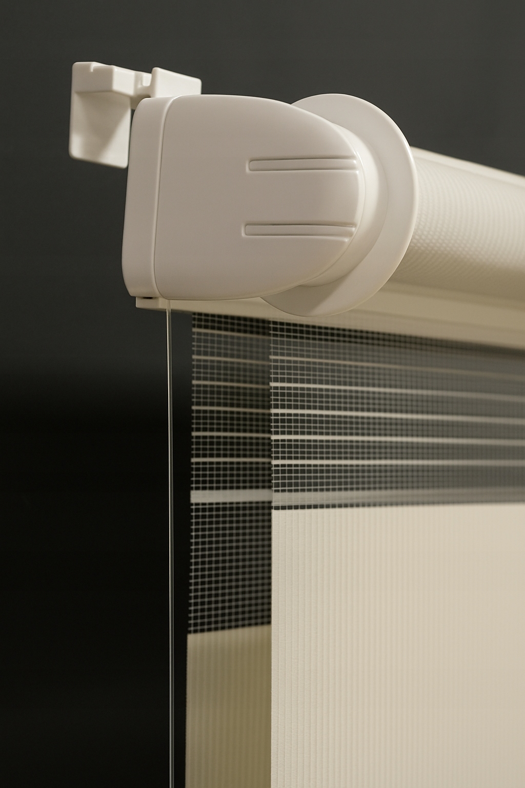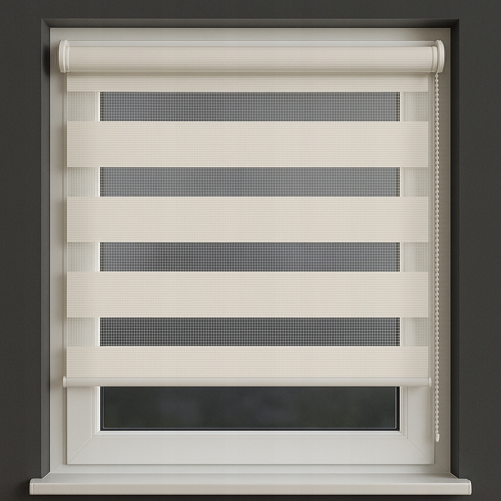 Слепой оснащен днем -днем ткань , которая сочетает в себе функции занавеса и слепых. Благодаря чередующимся прозрачным и отключенным поясам, вы можете свободно регулировать уровень солнечного света, конфиденциальность и придать интерьеру элегантный вид.