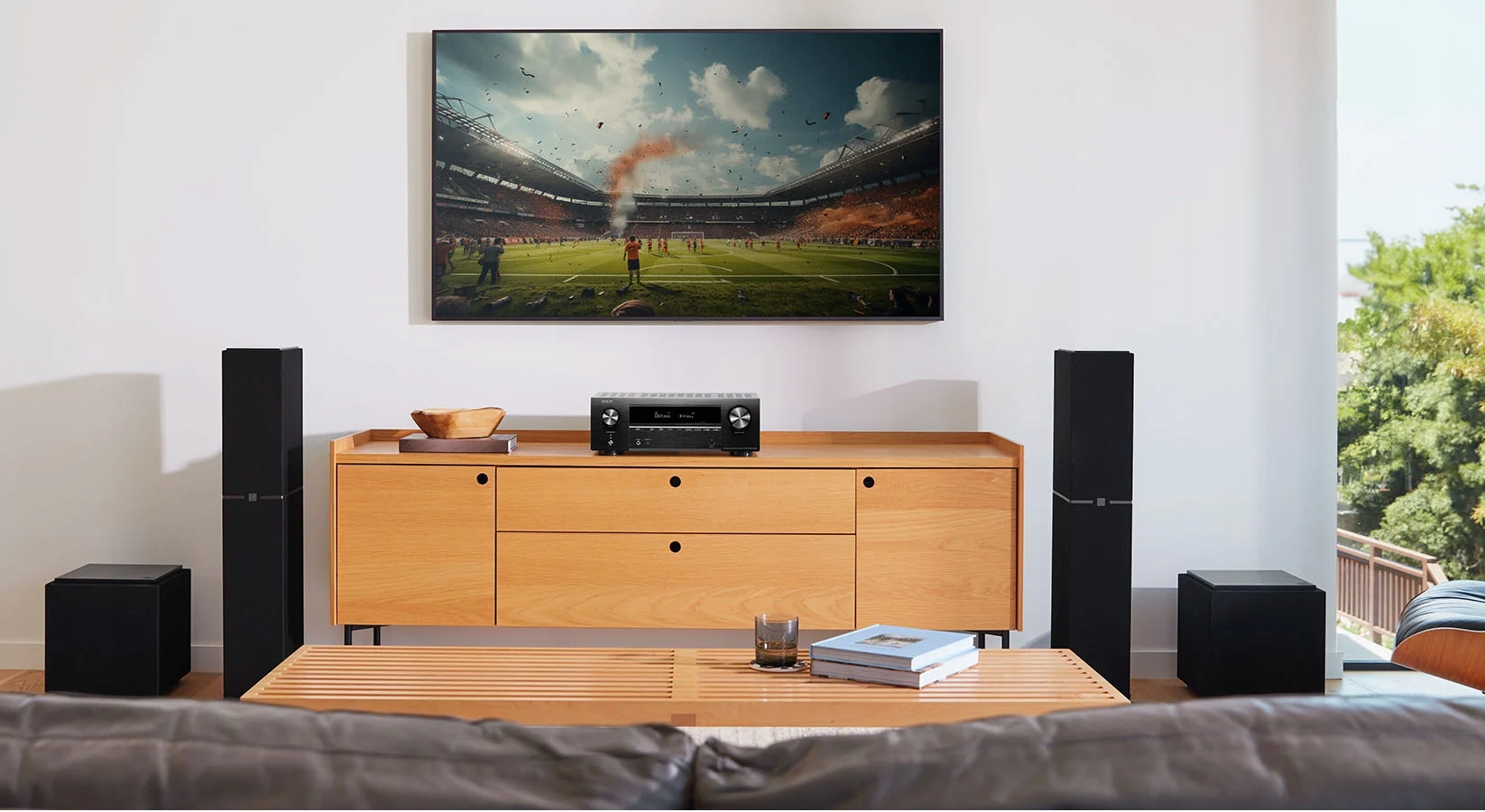 Основные особенности: h2> - Качество звука Denon: заполните мелкие и средние комнаты с динамическим звуком Denon.