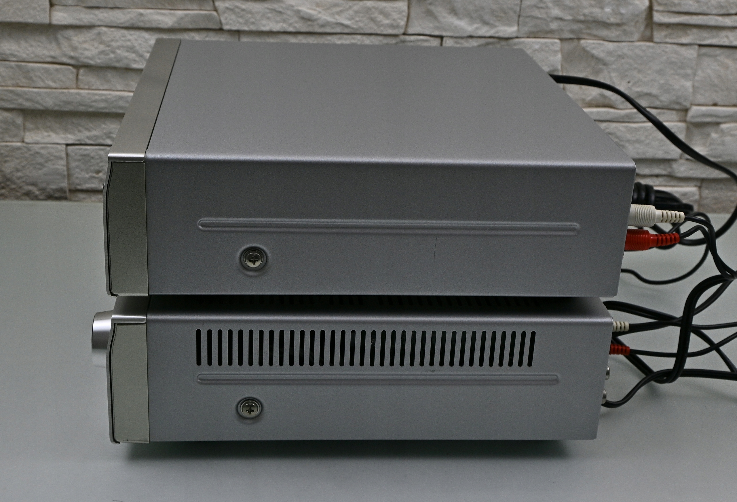 Устройство оснащено тремя линейными входами и одной парой разъемов RCA, предназначенных для аналогового проигрывателя виниловых пластинок. Также имеется выход для рекордера и моновыход предусилителя, предназначенный для активного сабвуфера.