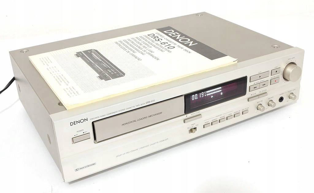 Очень известное устройство на мировом рынке. DRS-610 – очень хорошая модель среди однокассетных магнитофонов. Хорошая возможность дополнить систему ценным сегментом. Кассета загружена горизонтально. Керамический стабилизатор. Разумеется, полностью работоспособен.