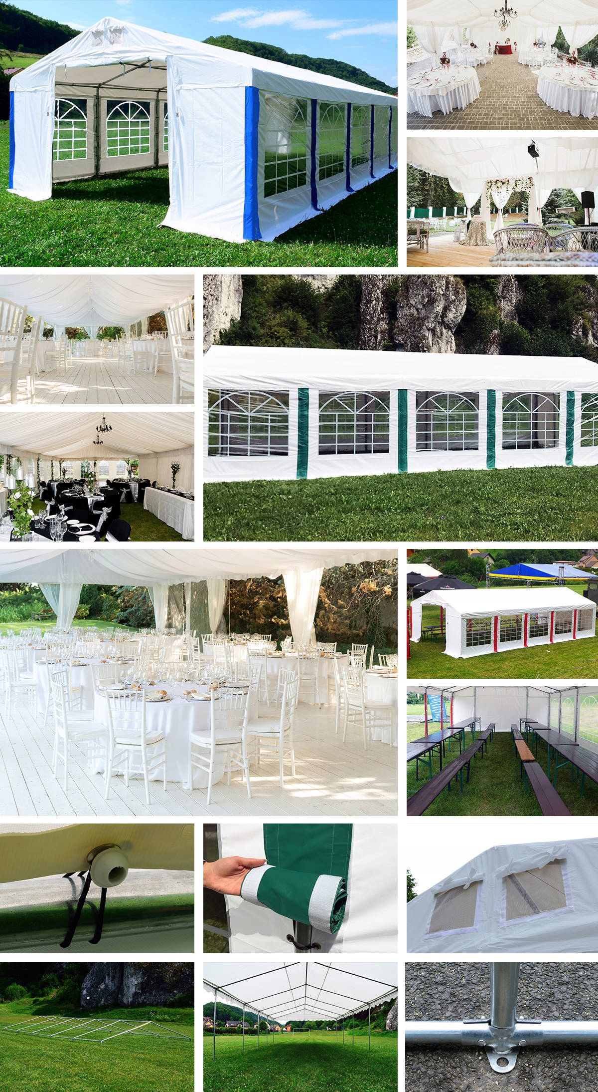Конструкция прочная и простая в установке . Благодаря этому, в дополнение к быстрому распределению, палатка может быть легко перемещена в любое место . Дополнительный дизайн обеспечивает большую стабильность . Это идеальная защита Catering и приглашенных гостей во время свадьбы, причастия, пикников и других специальных мероприятий . Он также будет использоваться как беседка, садовая палатка или терраса . Палатка также может использоваться как коммерческое пространство и дополнительное пространство в вашем помещении