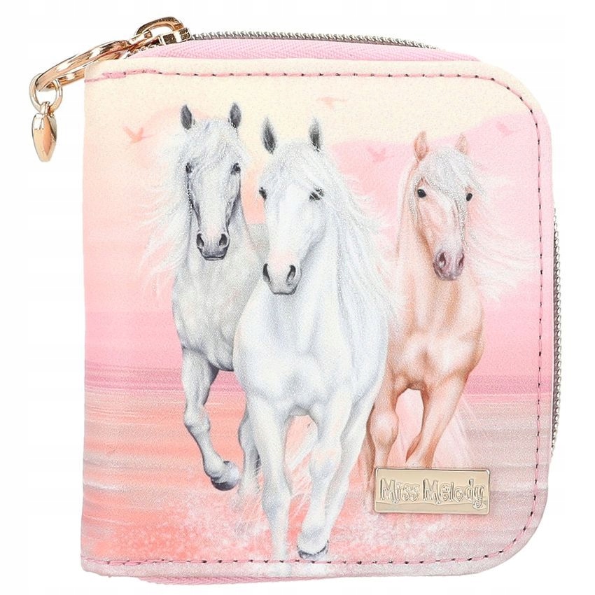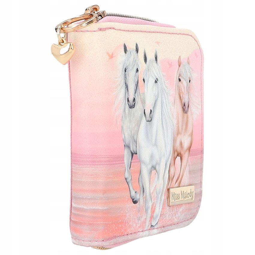 Мечтательный мотив лошади, нежно-розовый и золотой блеск: кошелек Sundown от Miss Melody имеет отделение для монет на молнии, отделение для купюр и различные отделения для карт (включая отделение для визитных карточек) с застежкой-кнопкой. Приятный плюс: золотое металлическое кольцо с подвеской в форме сердечка.