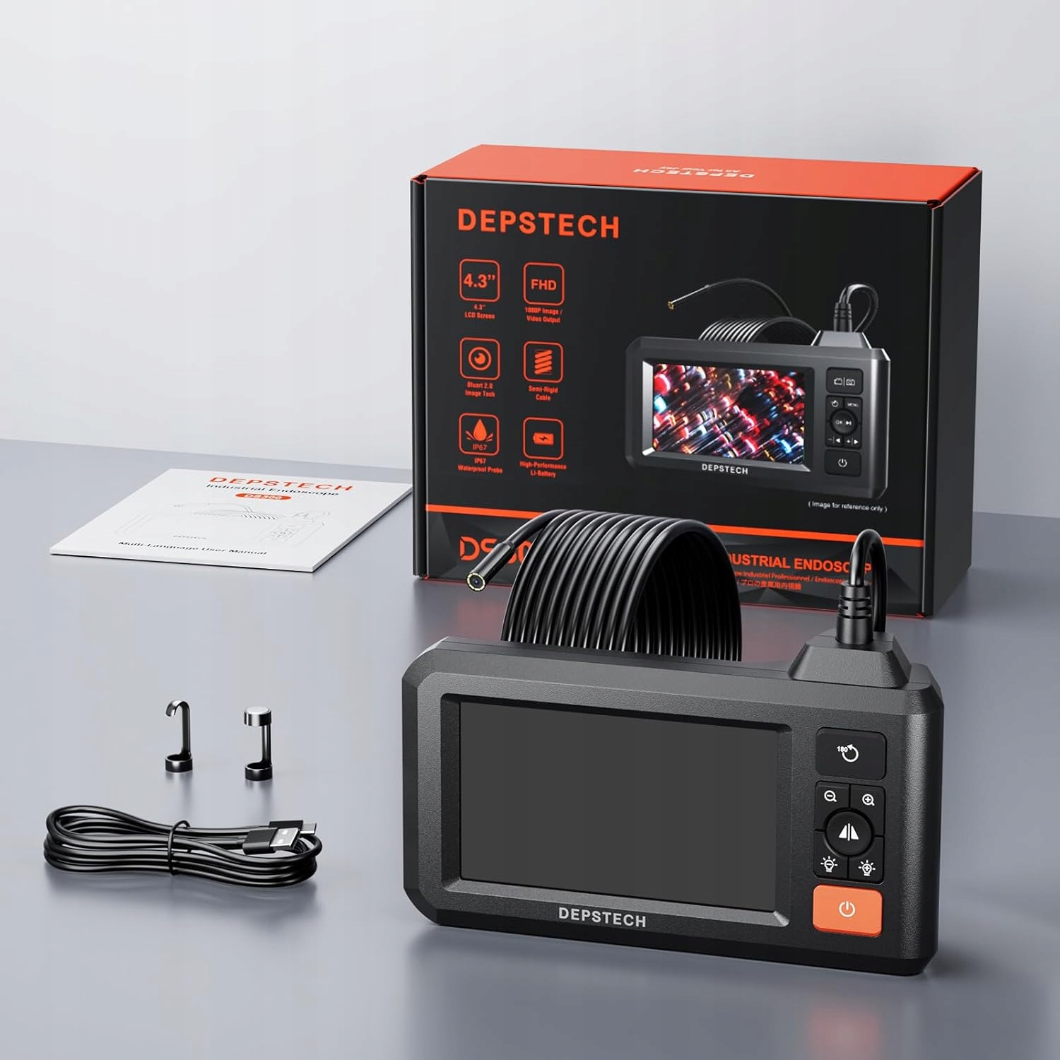Камера для эндоскопического осмотра Depstech 4.3 IPS-экран 1080P, шланг 5 м