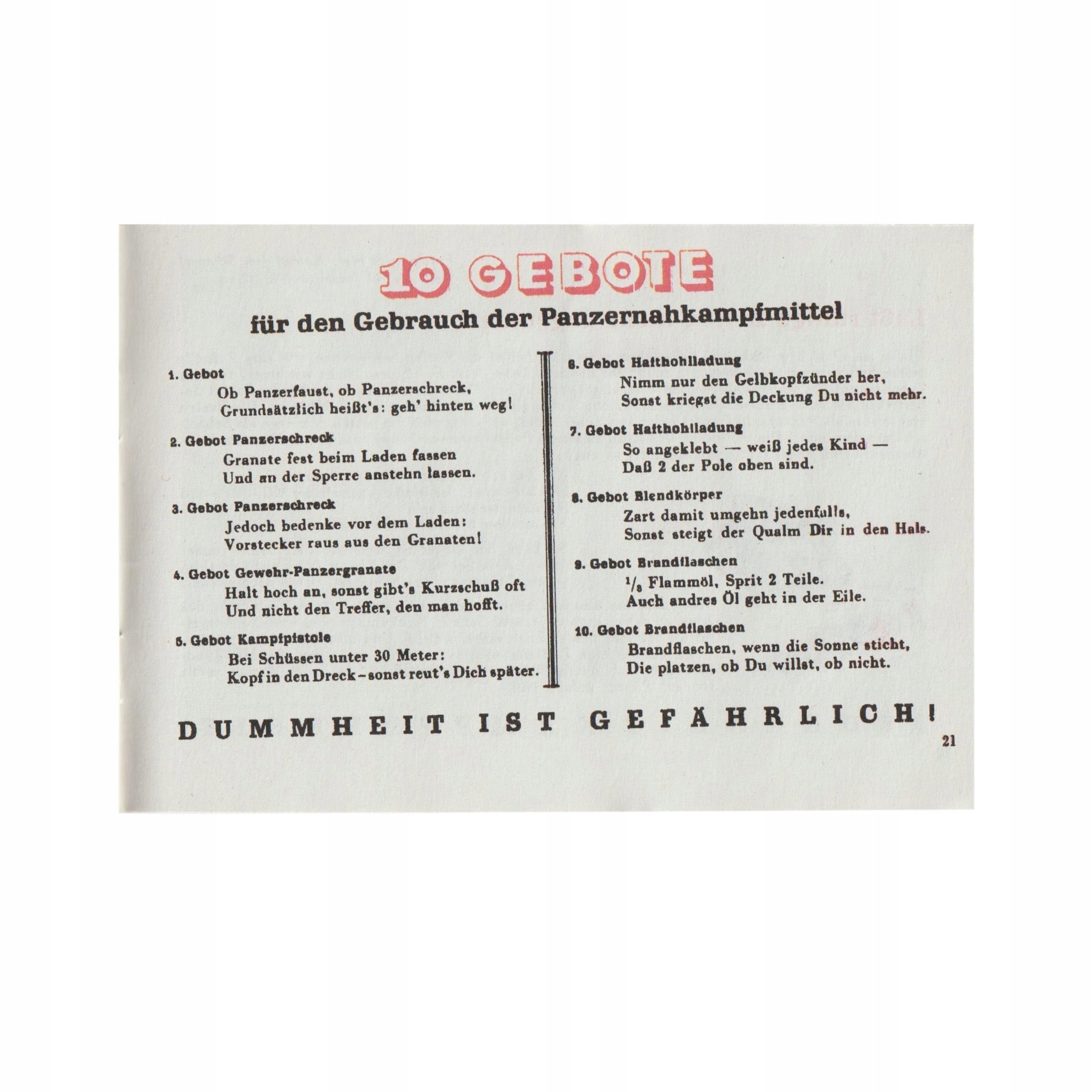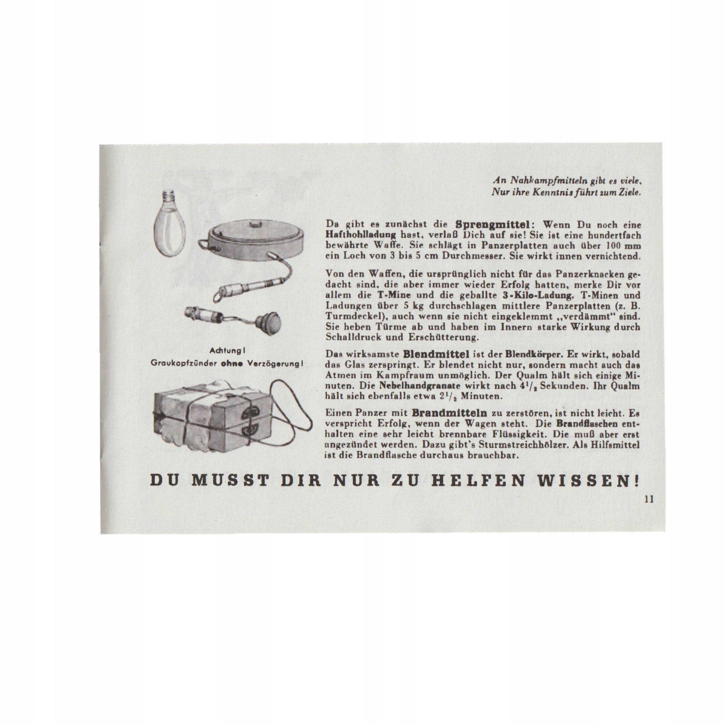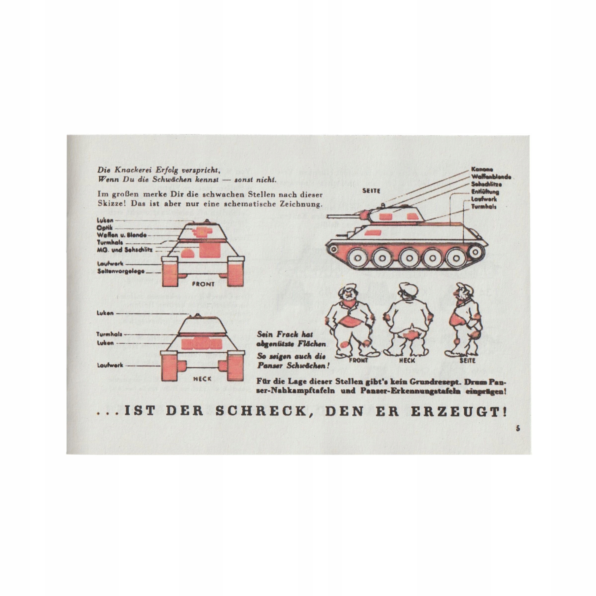 Идеальная копия Der Panzerknacker, буклета с инструкциями по методам применения противотанкового оружия. Изготовление буклетов началось 13 мая 1944 года. В них показывали способы применения различных средств борьбы с бронетехникой противника, обсуждали тактику борьбы с танками. Буклет состоит из описаний, технических рисунков и рисунков, типичных для немецких брошюр. Реплика выполнена на плотной бумаге. Очень точно воспроизведены детали.