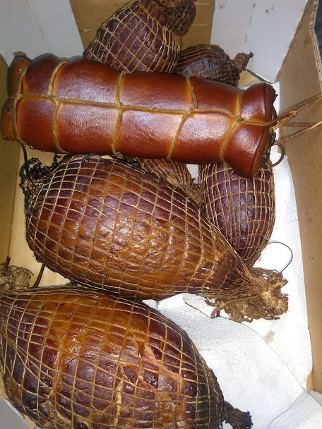 Примеры колбасных изделий, выполненных любительским способом из древесины бука, ольхи и вишни