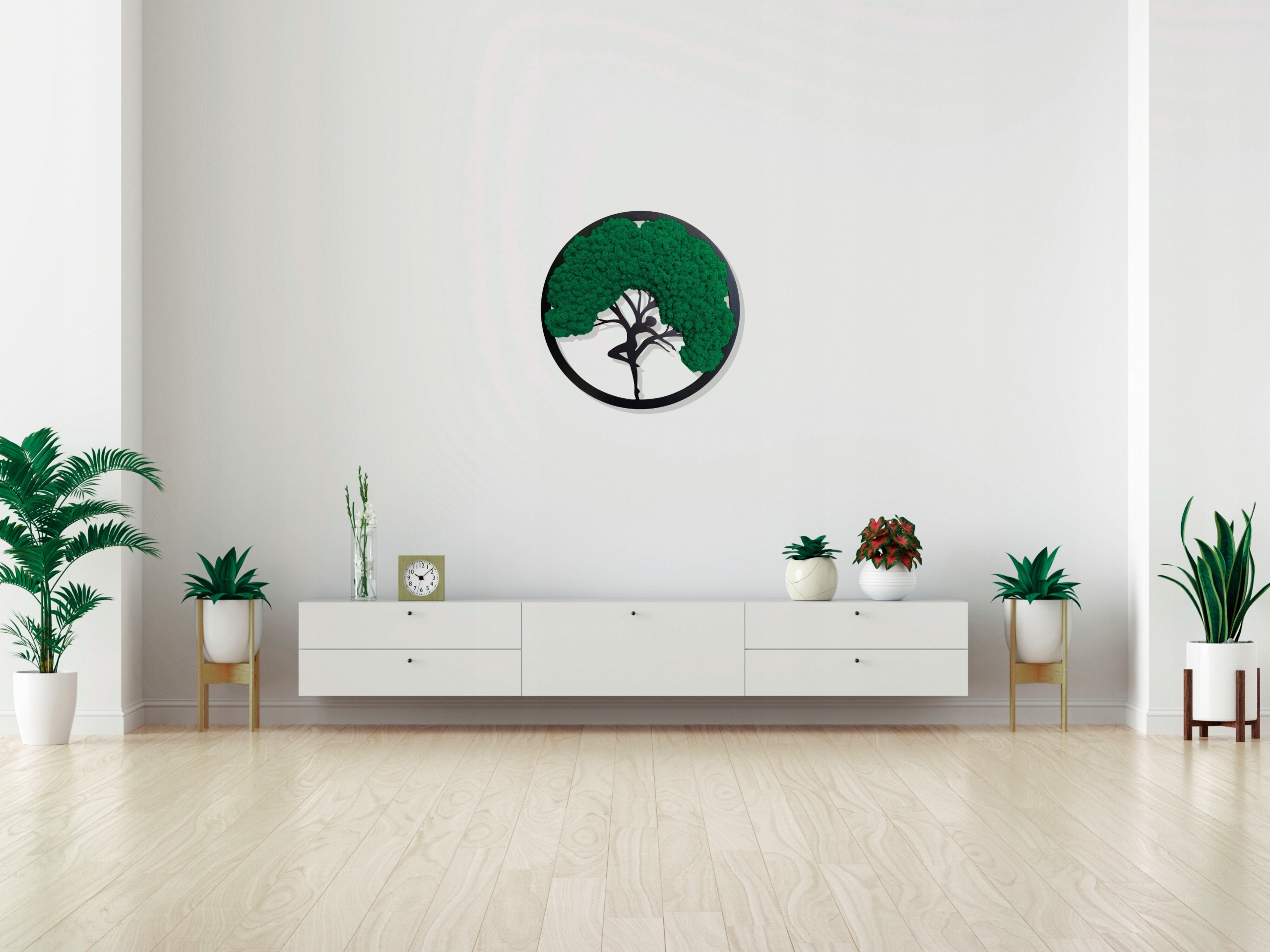 Вы можете повесить картину из мха на стену в гостиной или спальне. Это также отличный способ изменить обстановку офиса, стойки регистрации отеля или ресторана. Композиция подойдет в качестве подарка близкому человеку, который любит зеленые аксессуары.