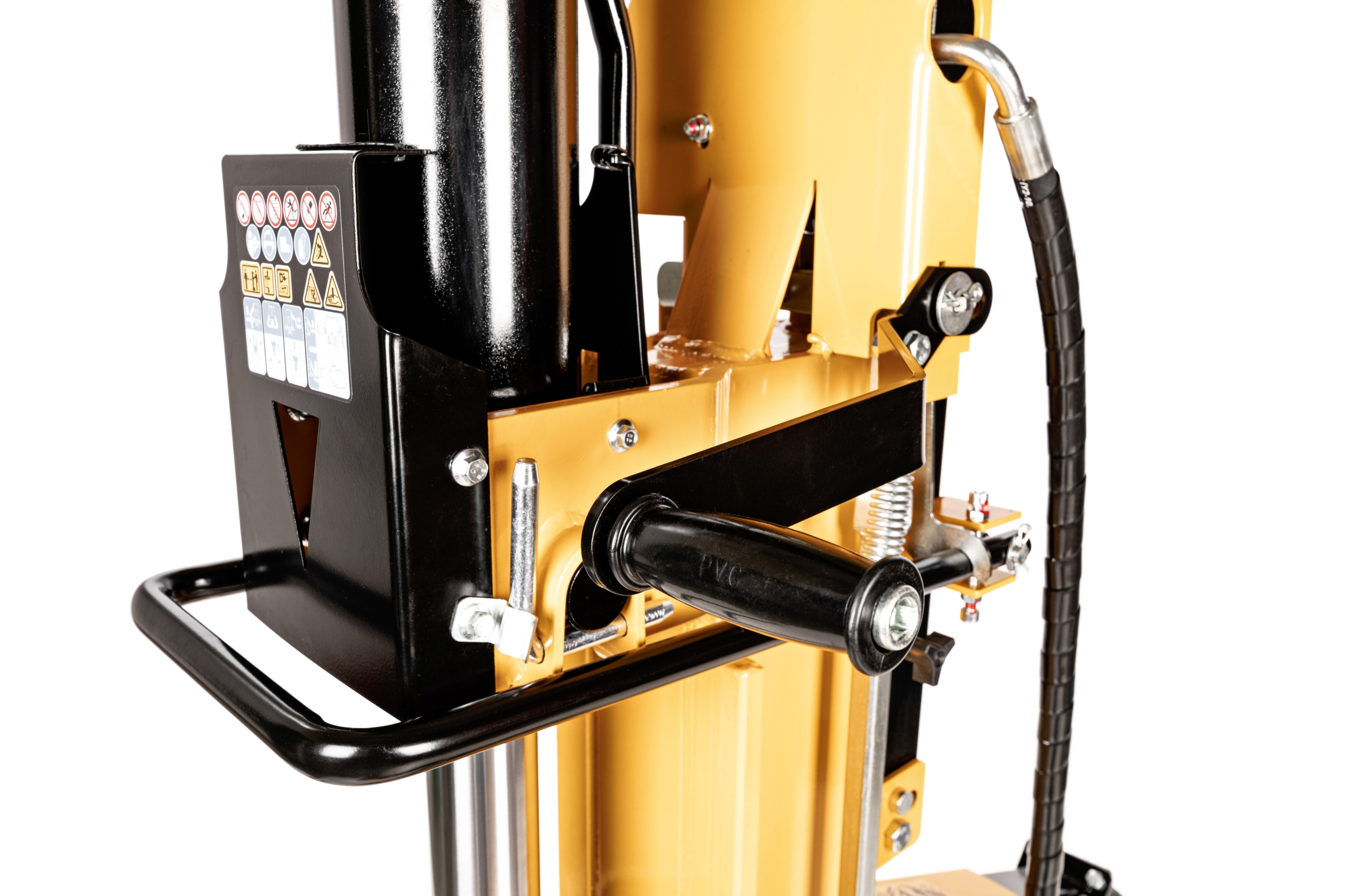 Работа также облегчена двухэтапной регулировкой рабочей скорости (6 и 2,9 м/мин) . Также можно установить клин, который разбивает дерево на четыре части.