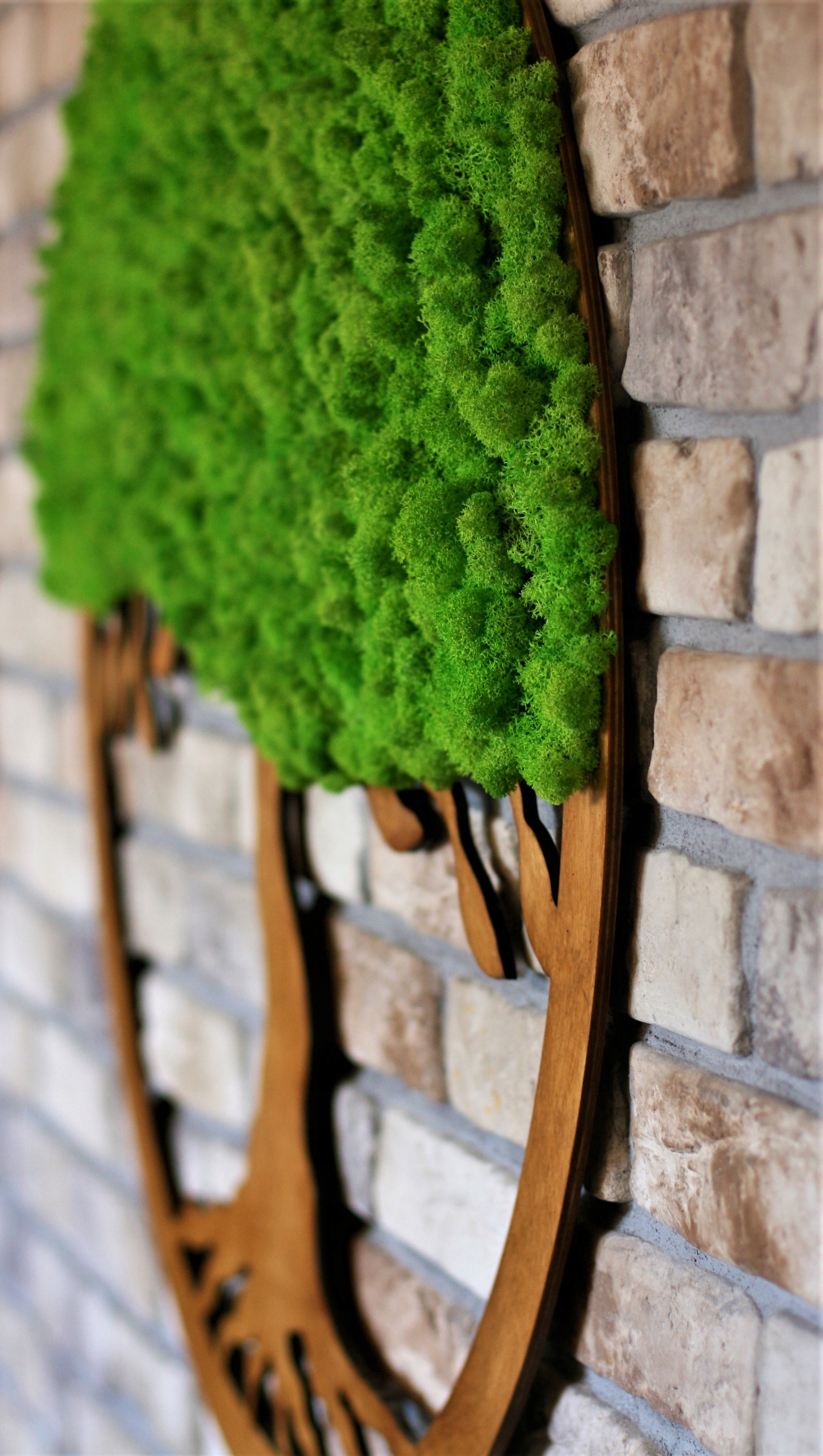 Декоративное дерево представляет собой натуральное украшение из березовой фанеры толщиной 4 мм. Аккуратно приклеиваем к дереву выбранный мох. В целом создает красивое и оригинальное украшение для любого интерьера.